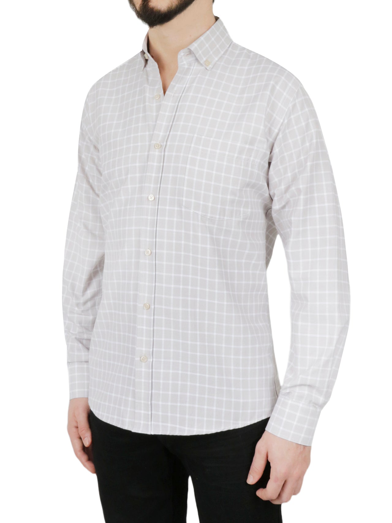 Beige Windowpane Checkered Dress ShirtBeige Windowpane Checkered Dress Shirt