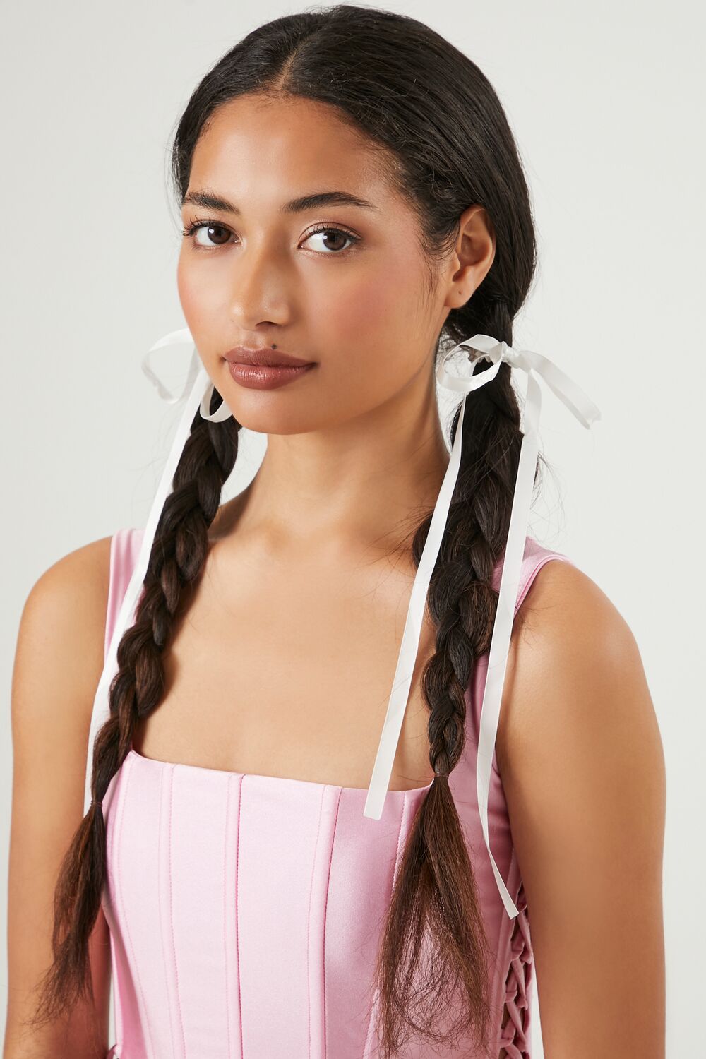 A pair of ribbon hair ties featuring an elasticized construction and self-tie bow design.Content + Care