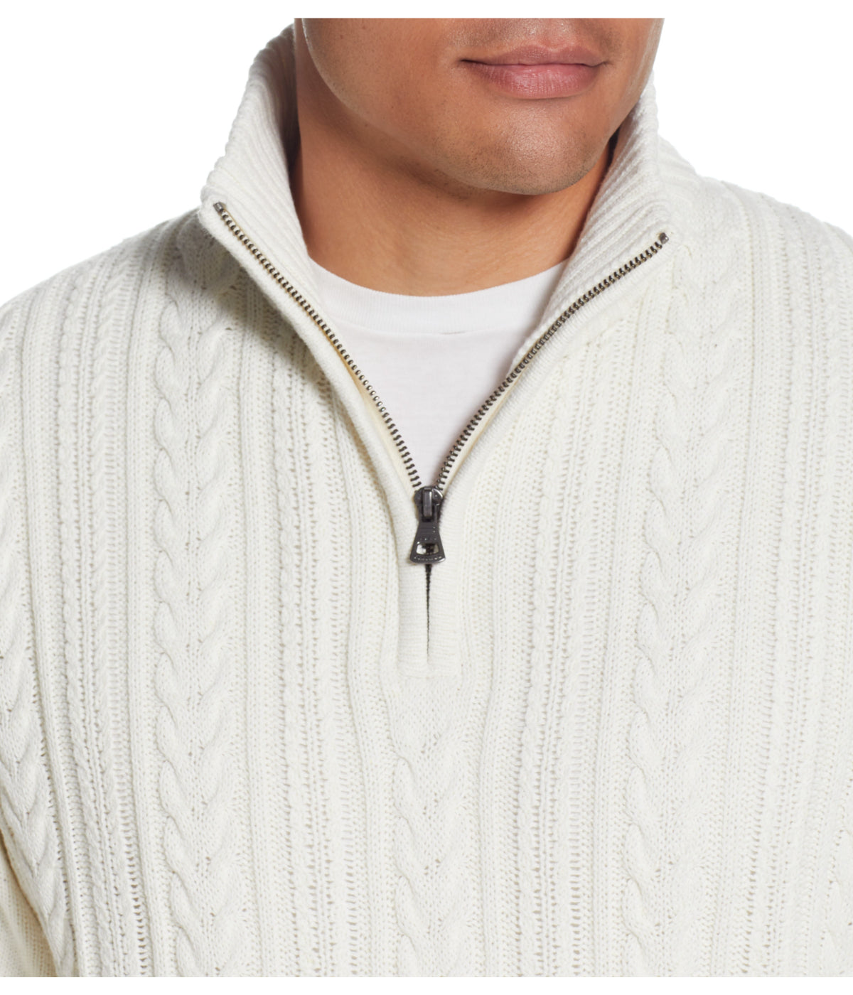Cable Knit Quarter Zip Sweater Ecru