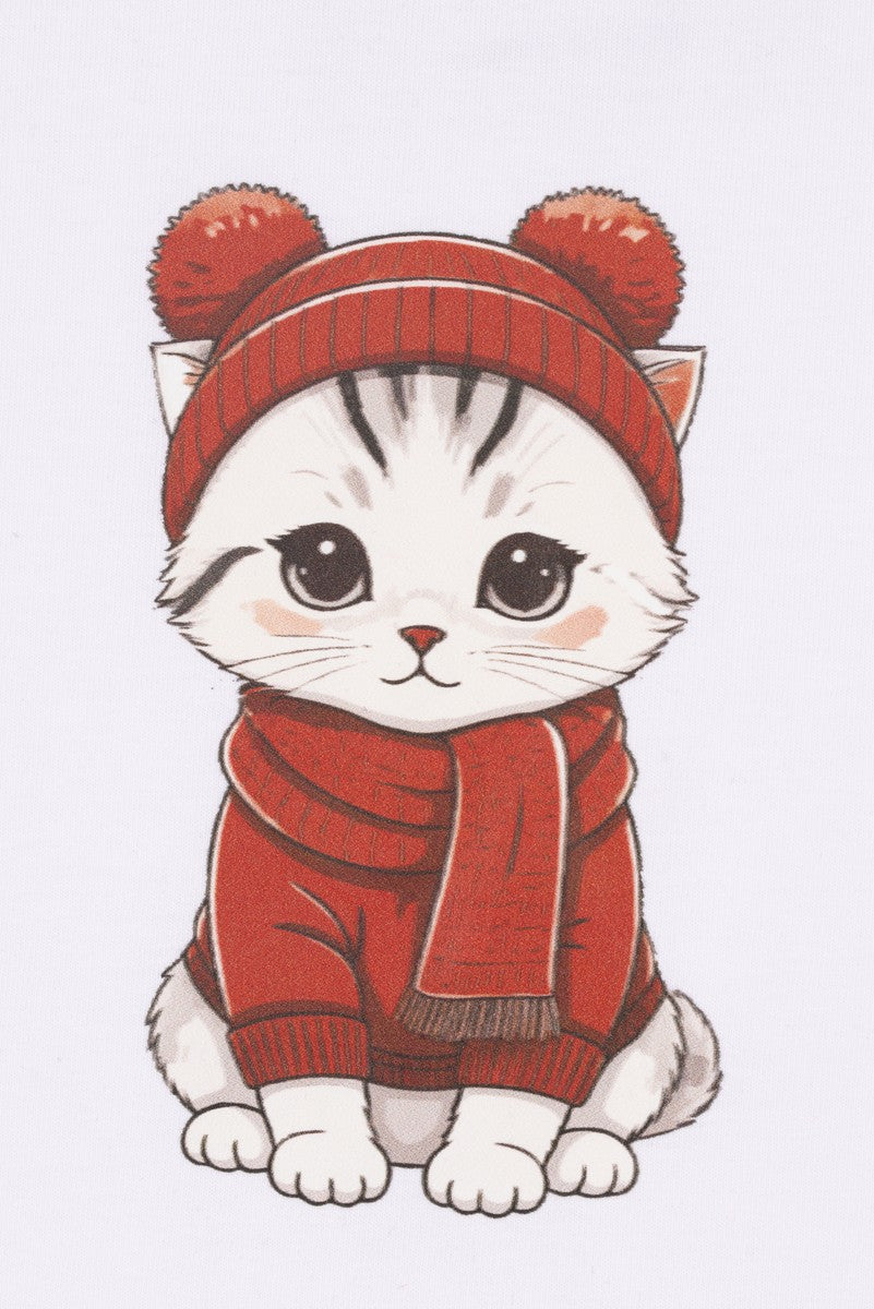 Short-sleeve tee with front cat graphic and crew neck