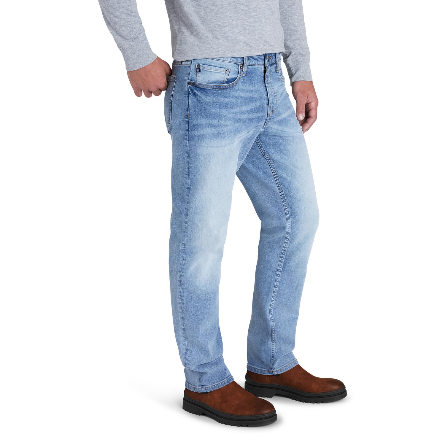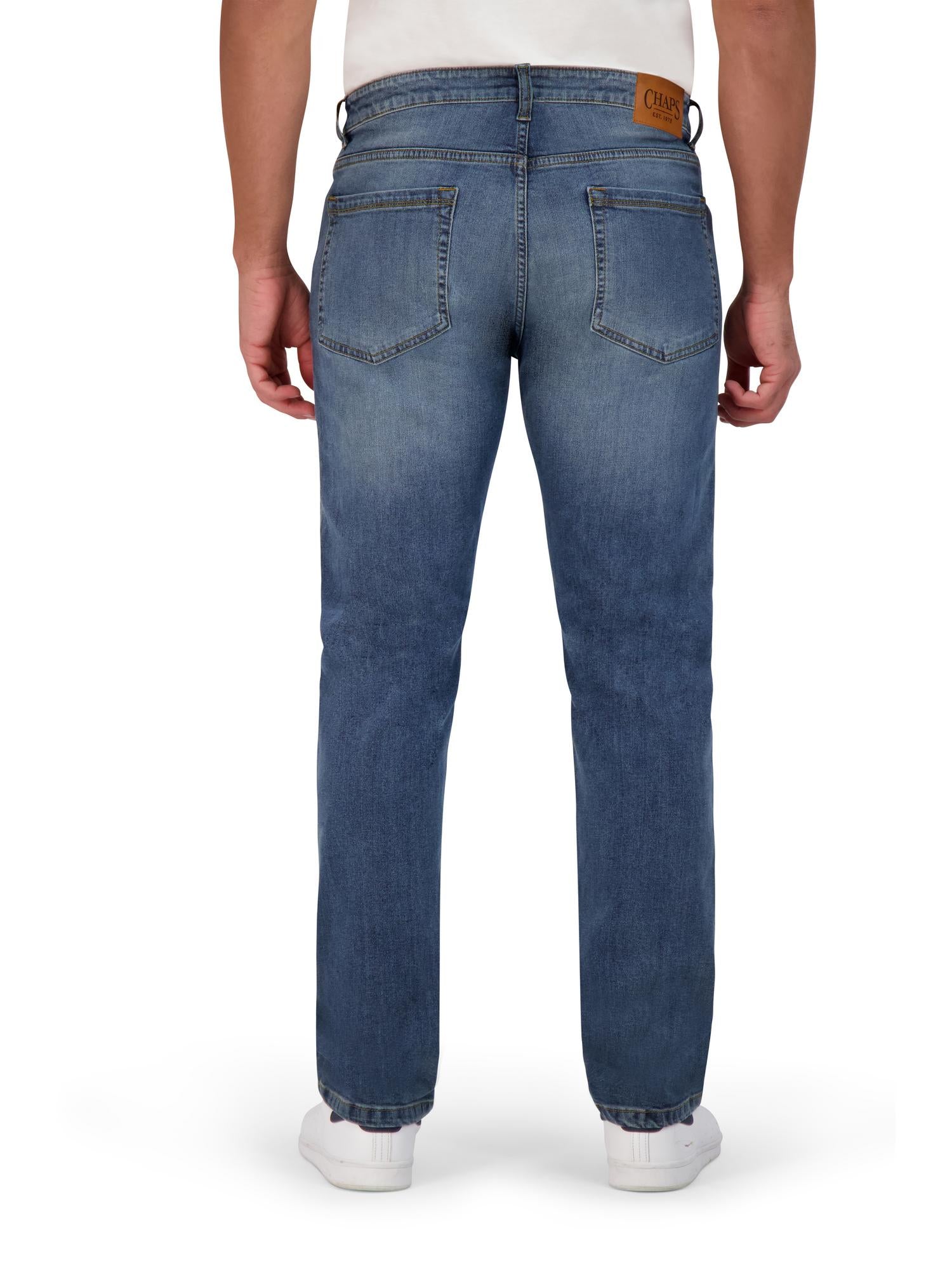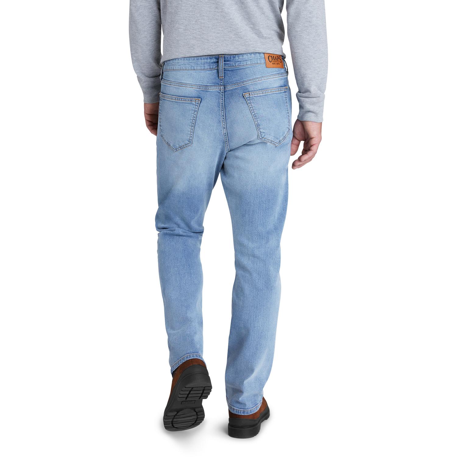 The Chaps Men’s Comfort Stretch Regular Fit jean features the timeless five pocket design for a look that shines at the restaurant, work, or at home among family and friends. Made with blue stretchy denim fabric, these pants are the perfect gift for men who want jeans to fit them instead of fitting into slim skinny jeans; like stretch pants, they move and flex with you.Product Care : Machine Wash Cold Wash Seperately Only Non Chlorine Bleach When Needed Tumble Dry Low Warm Iron If NeededMaterial : 82% Cotton, 17% Polyester, 1 %Spandex
