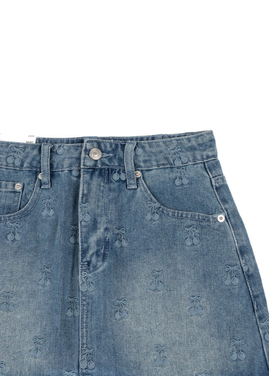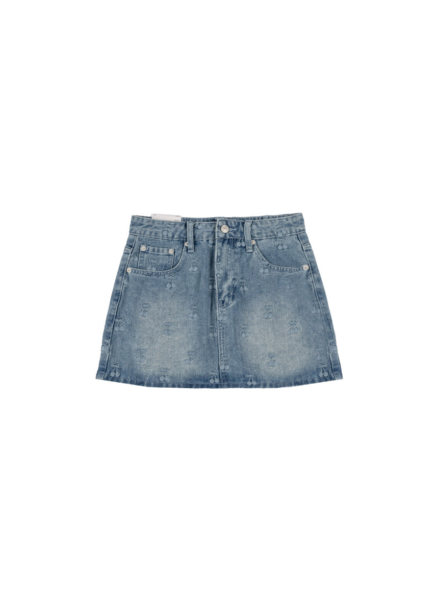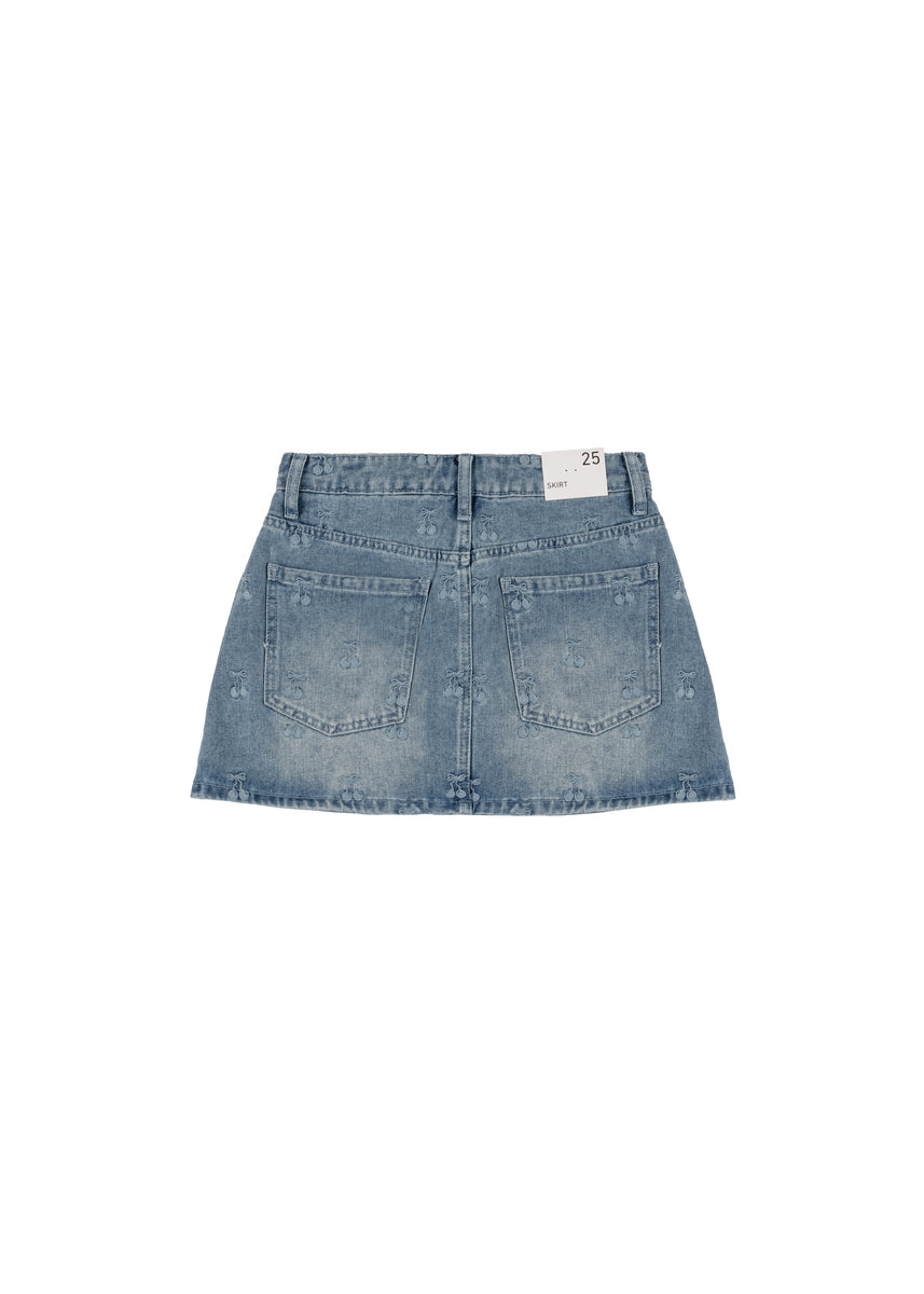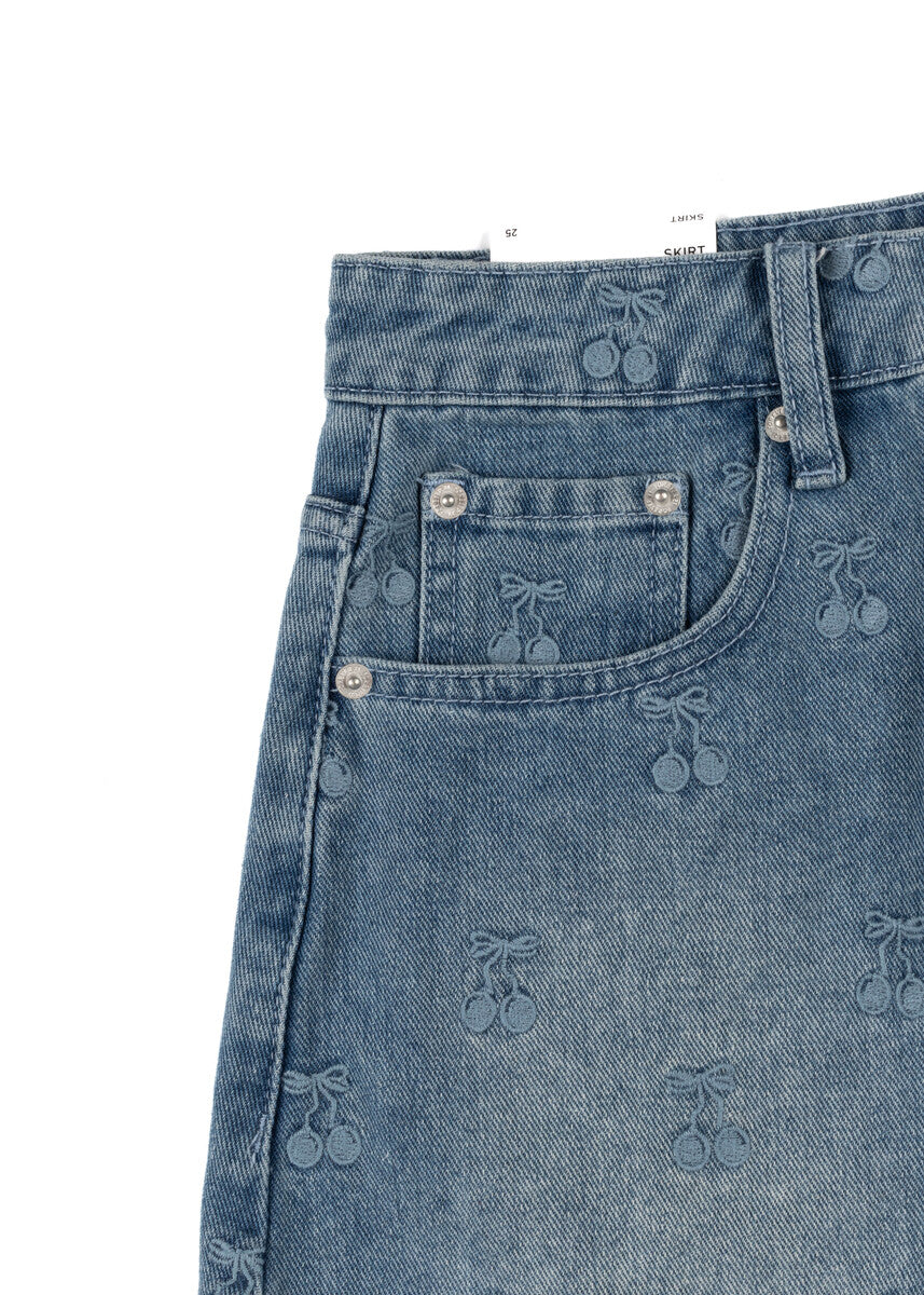 Cherry Embroidered Denim Mini Skirt