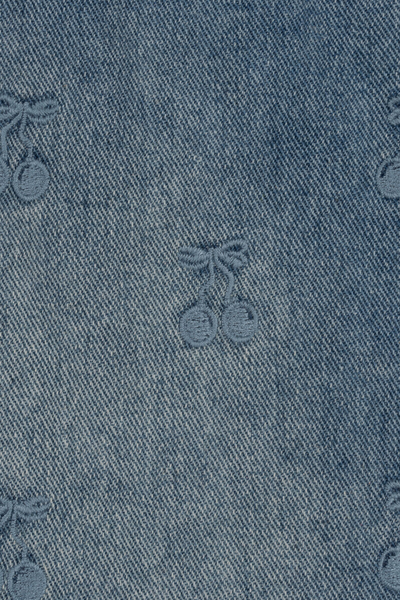 Allover cherry embroidery adds a playful, textured pattern