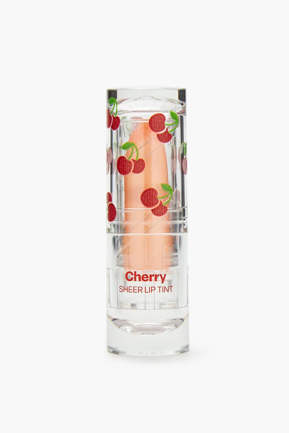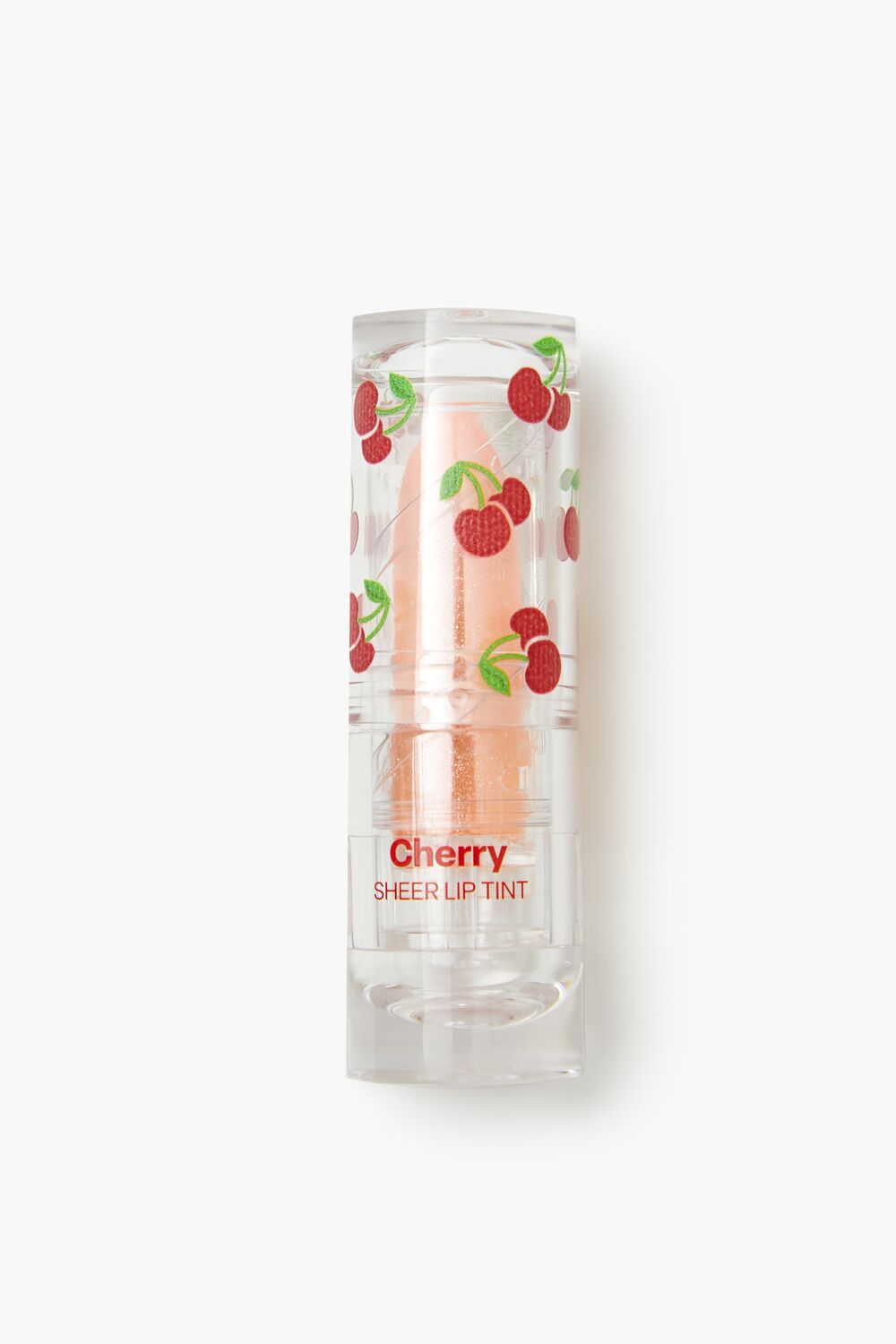 A lip tint featuring cherry flavor, a sheer finish, and hint of sparkle, complete in transparent twist-up packaging with a cherry-themed design.Size + Fit