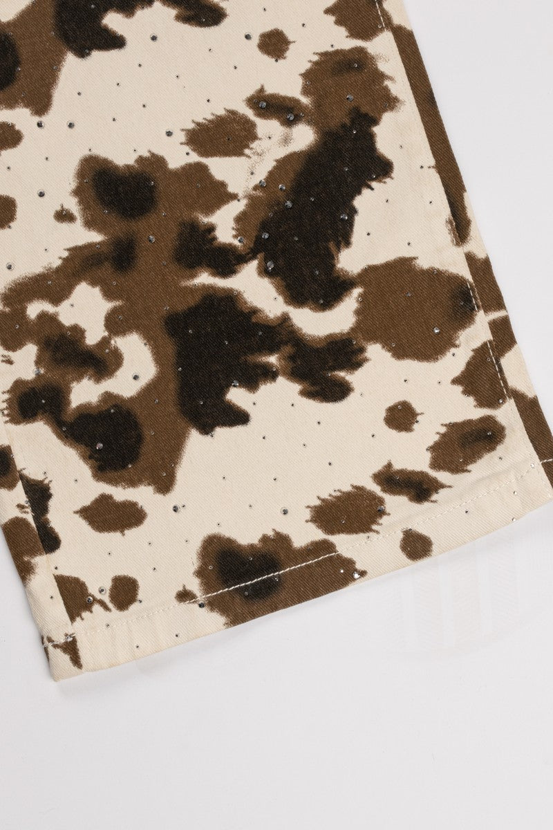Cow Print Rhinestone Wide-Leg Jeans