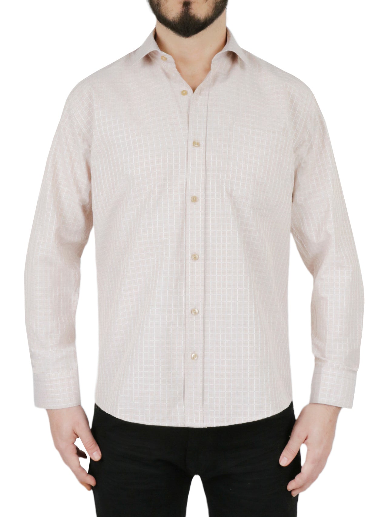 Be the first to review “Cream Windowpane Checkered Dress Shirt”