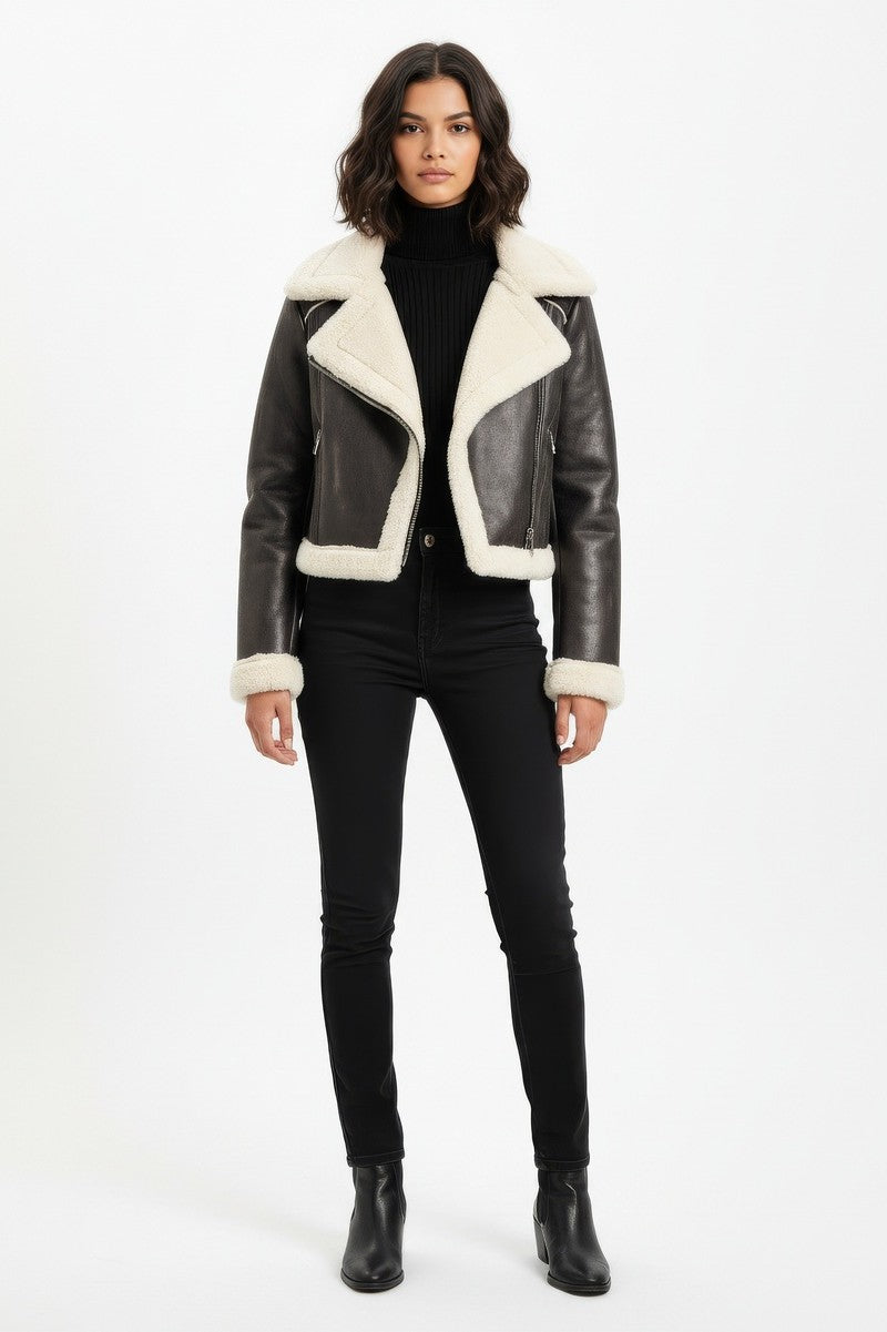 Be the first to review “Cropped Faux Leather & Shearling Moto Jacket”