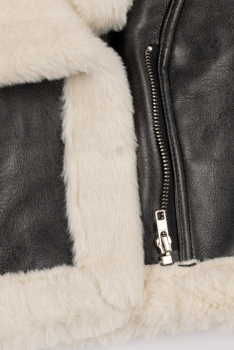 Crafted from soft faux leather with plush shearling-style lining for a cozy, structured look