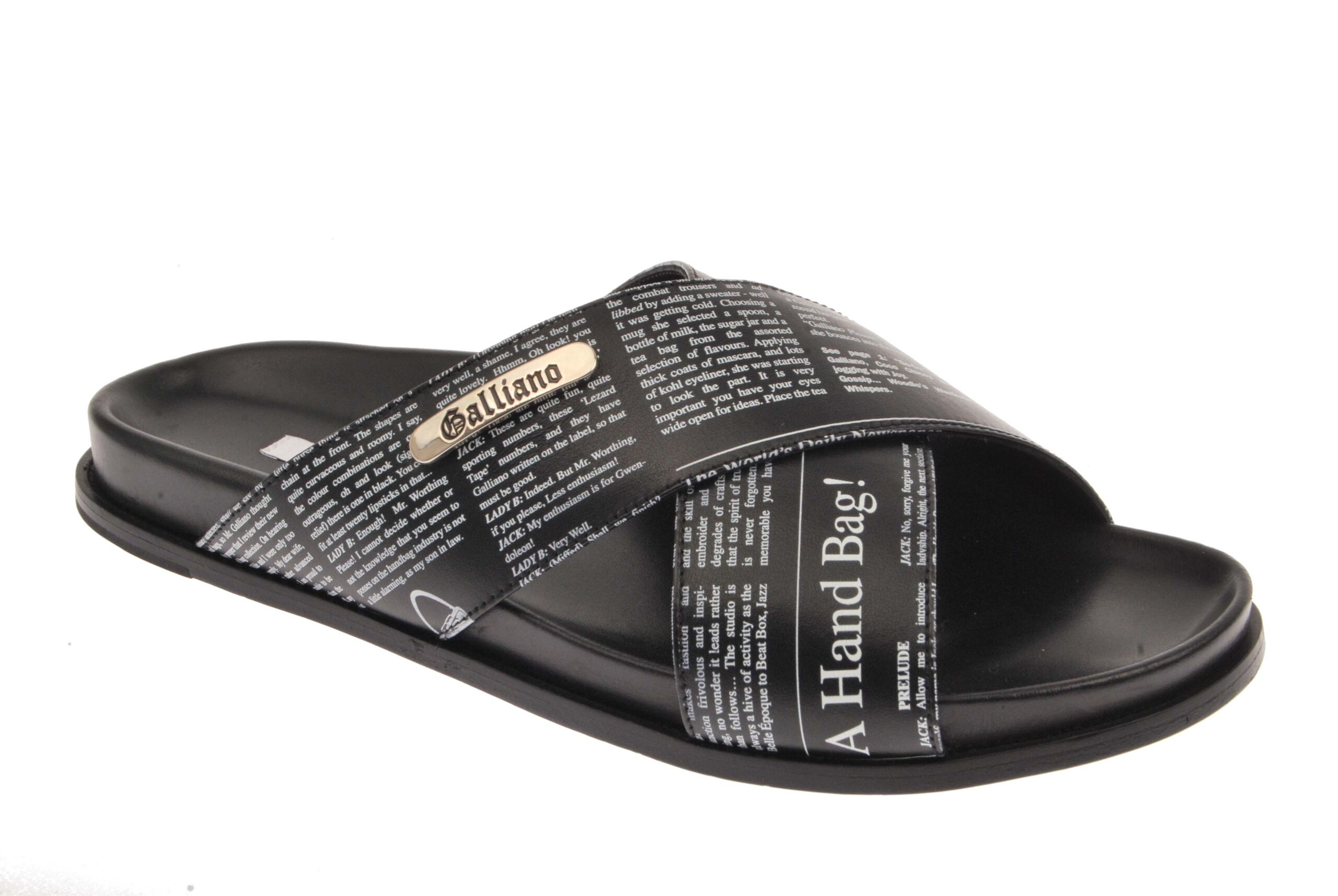 Be casually fashionable with these eye-catching John Galliano Cross Strap Newsprint Slide. These slides are replete with the newsprint motif that Galliano footwear are now famous for, and will provide both comfort and fashion kudos in equal measure. A worthy addition to your footlocker. Product Care : Wipe clean. Material : 100% Leather.
