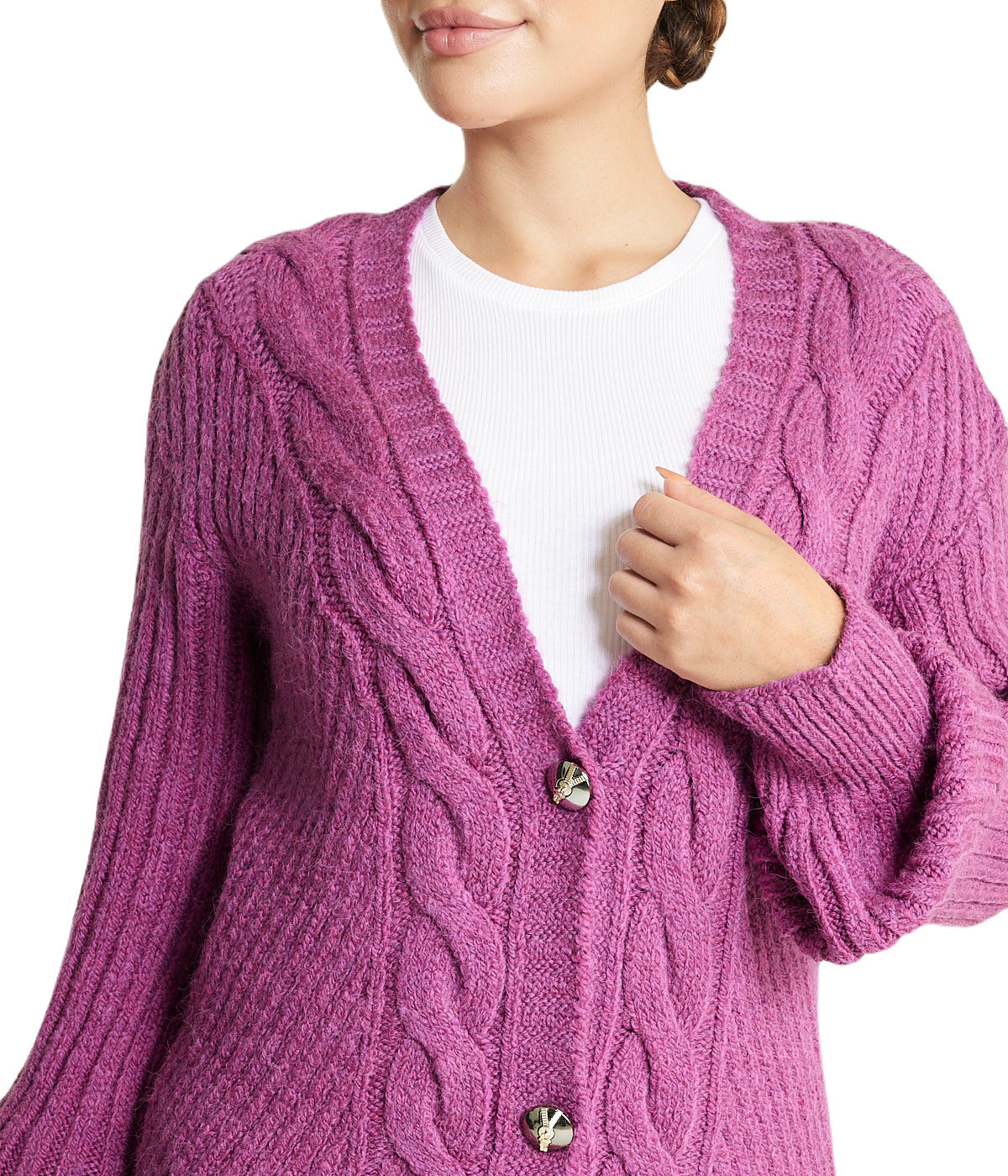 Deep V Cable Cardigan