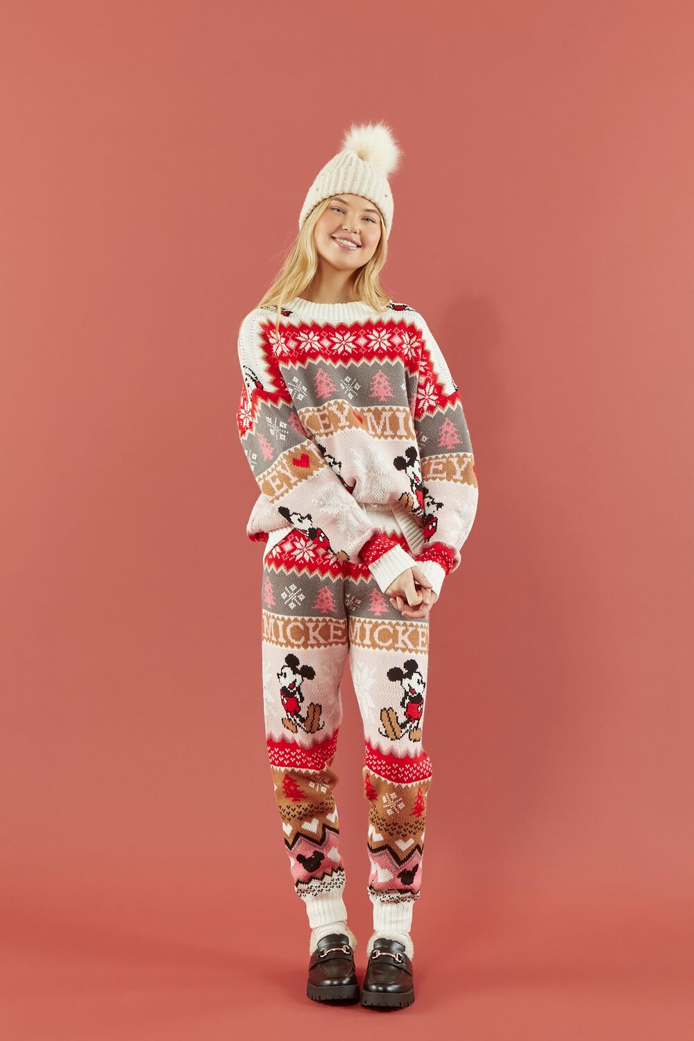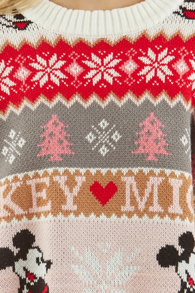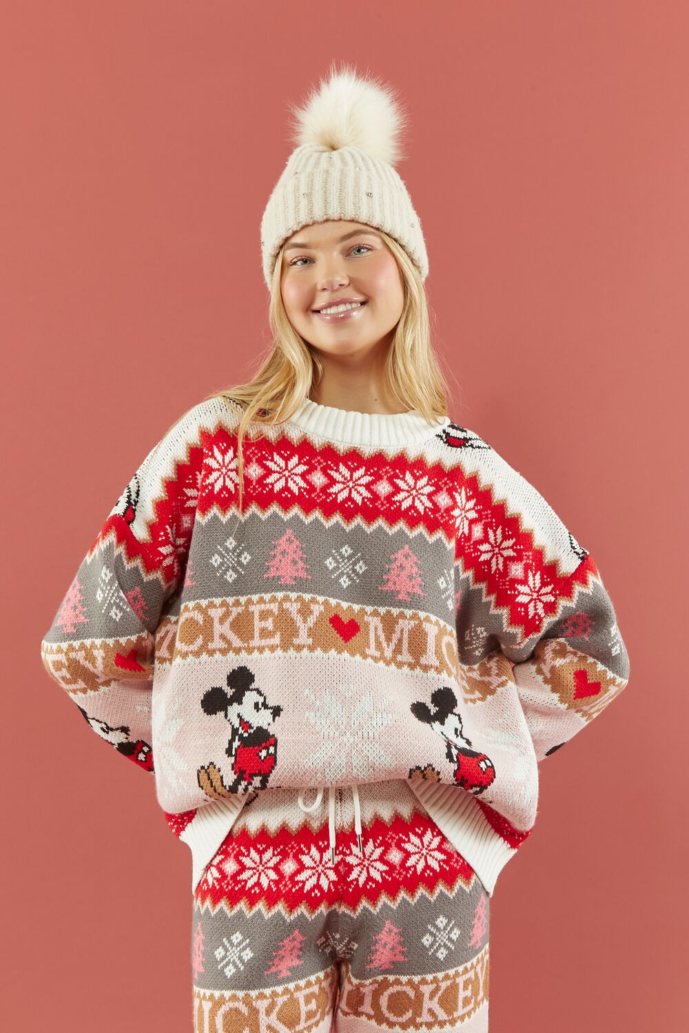 From our Disney x Forever 21 collection, this knit sweater features an allover Fair Isle pattern with snowflake and pine tree , ‘Mickey’ text and accompanying character graphics, dropped long sleeves, and ribbed trim.- Officially licensed product