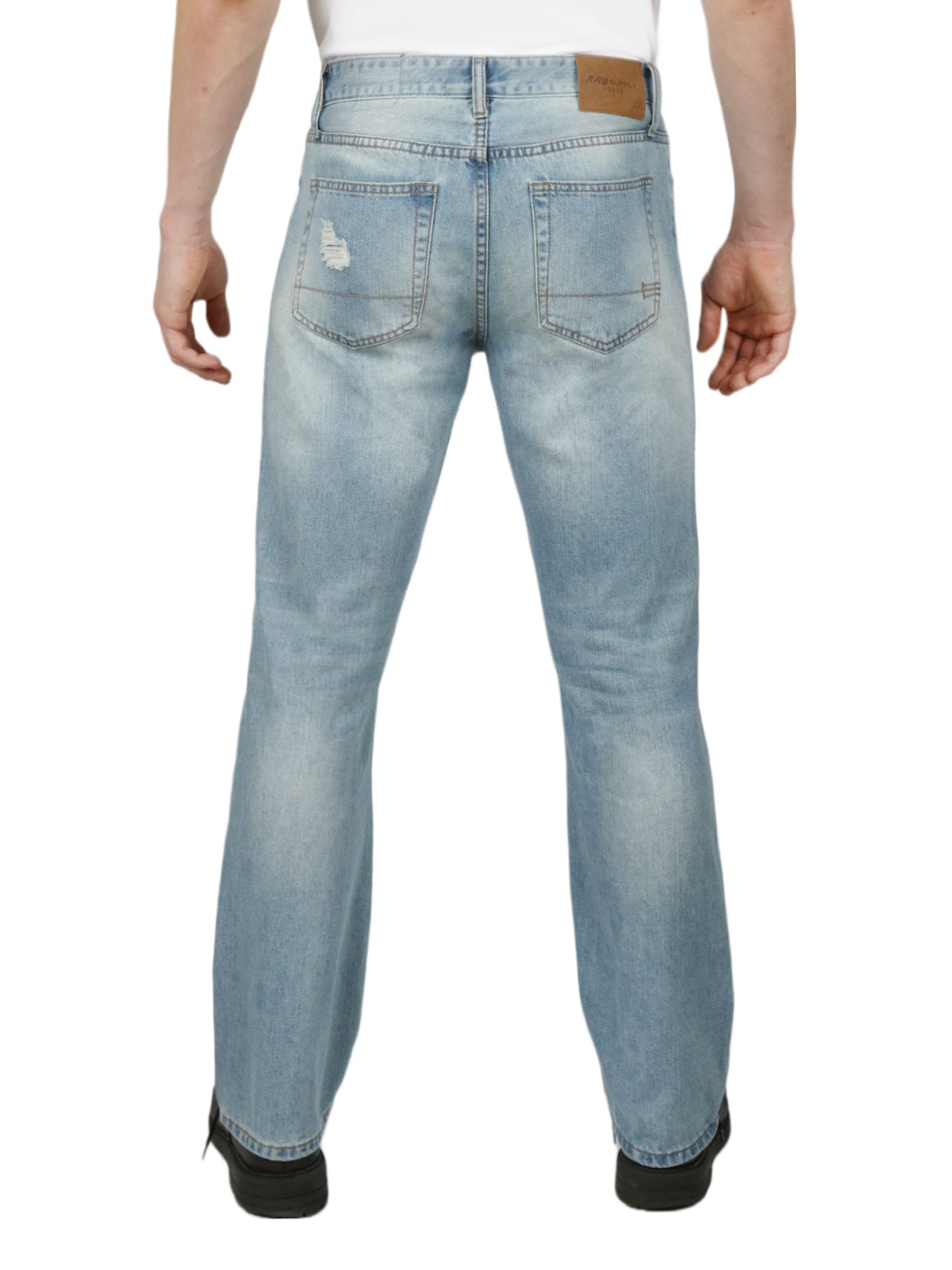 This distressed slim fit bootcut jean features a classic five pocket design in rigid light wash non stretch denim. Product Care : Spot Clean Material : 80% Cotton, 20% Polyester
