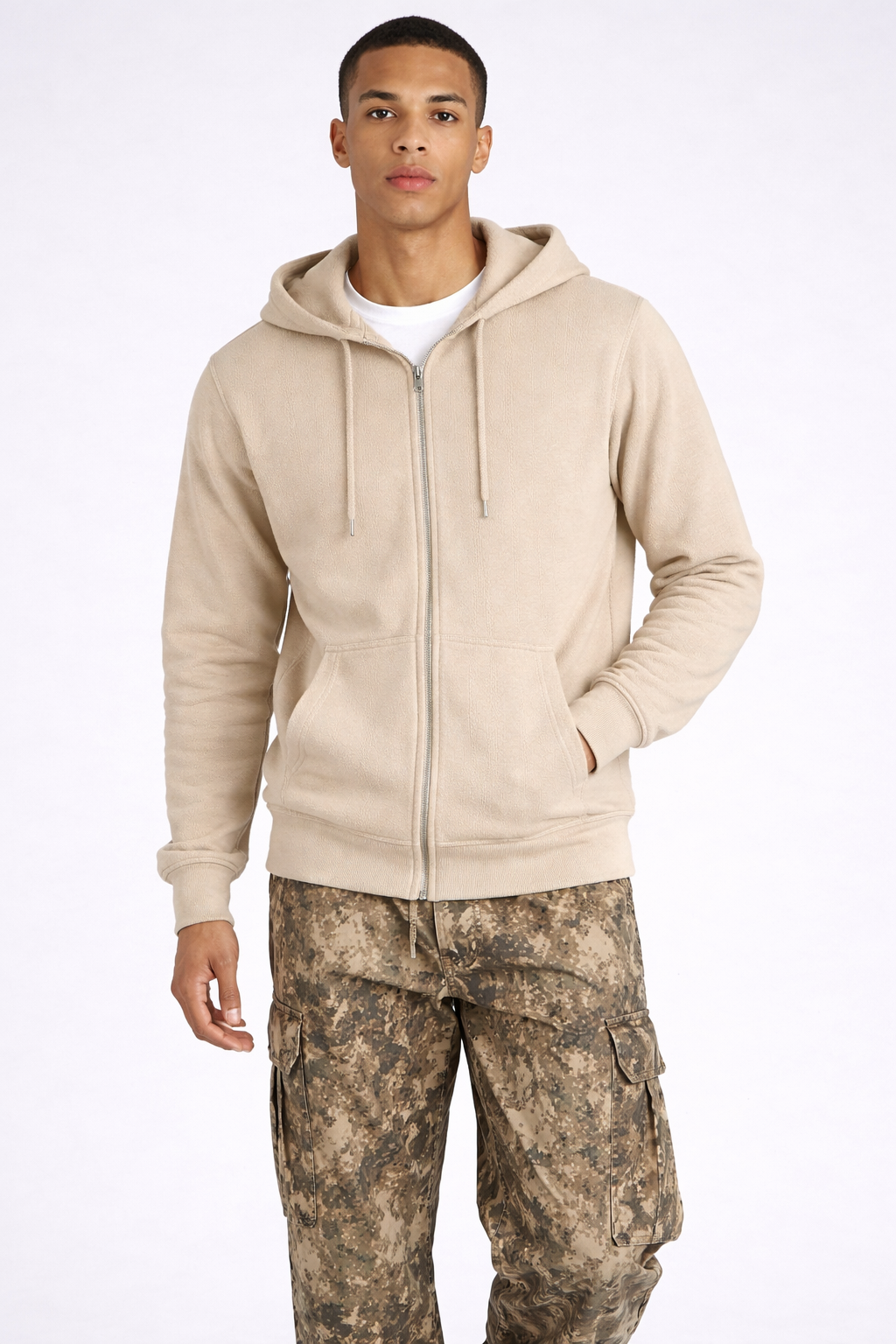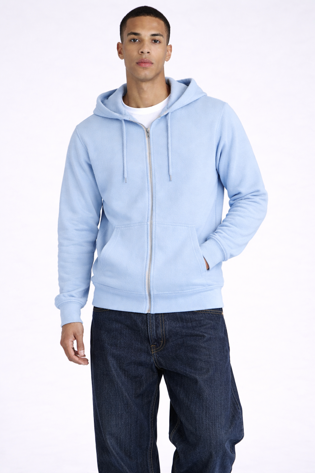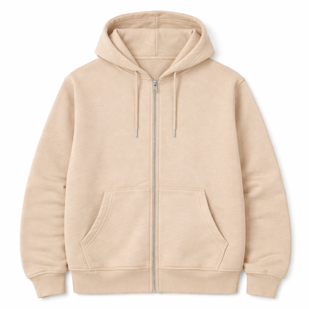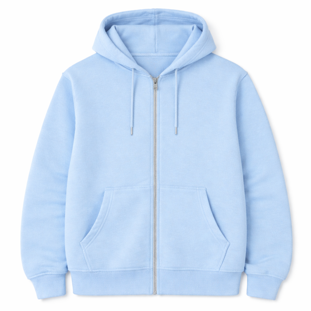 Classic zip-up hoodie with an adjustable drawstring hood