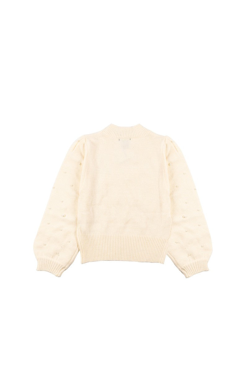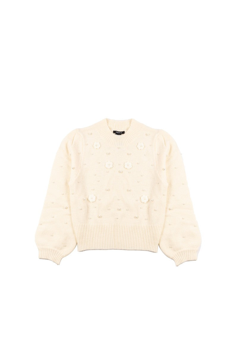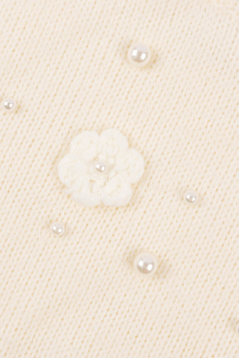 Knit sweater adorned with floral appliqués and pearl-style accents