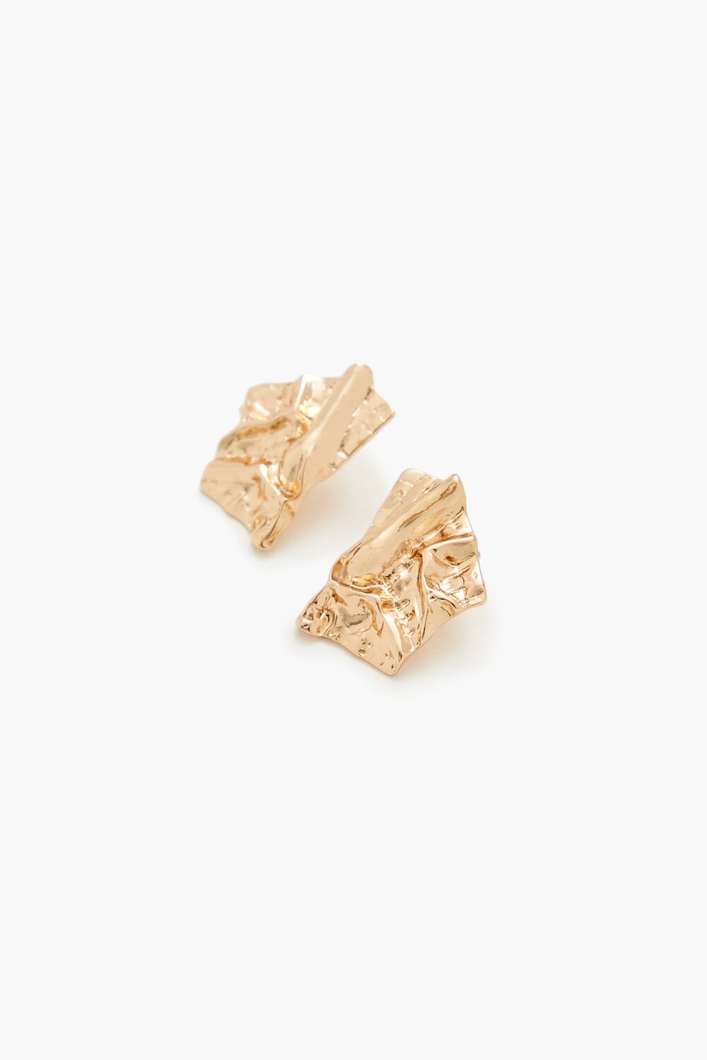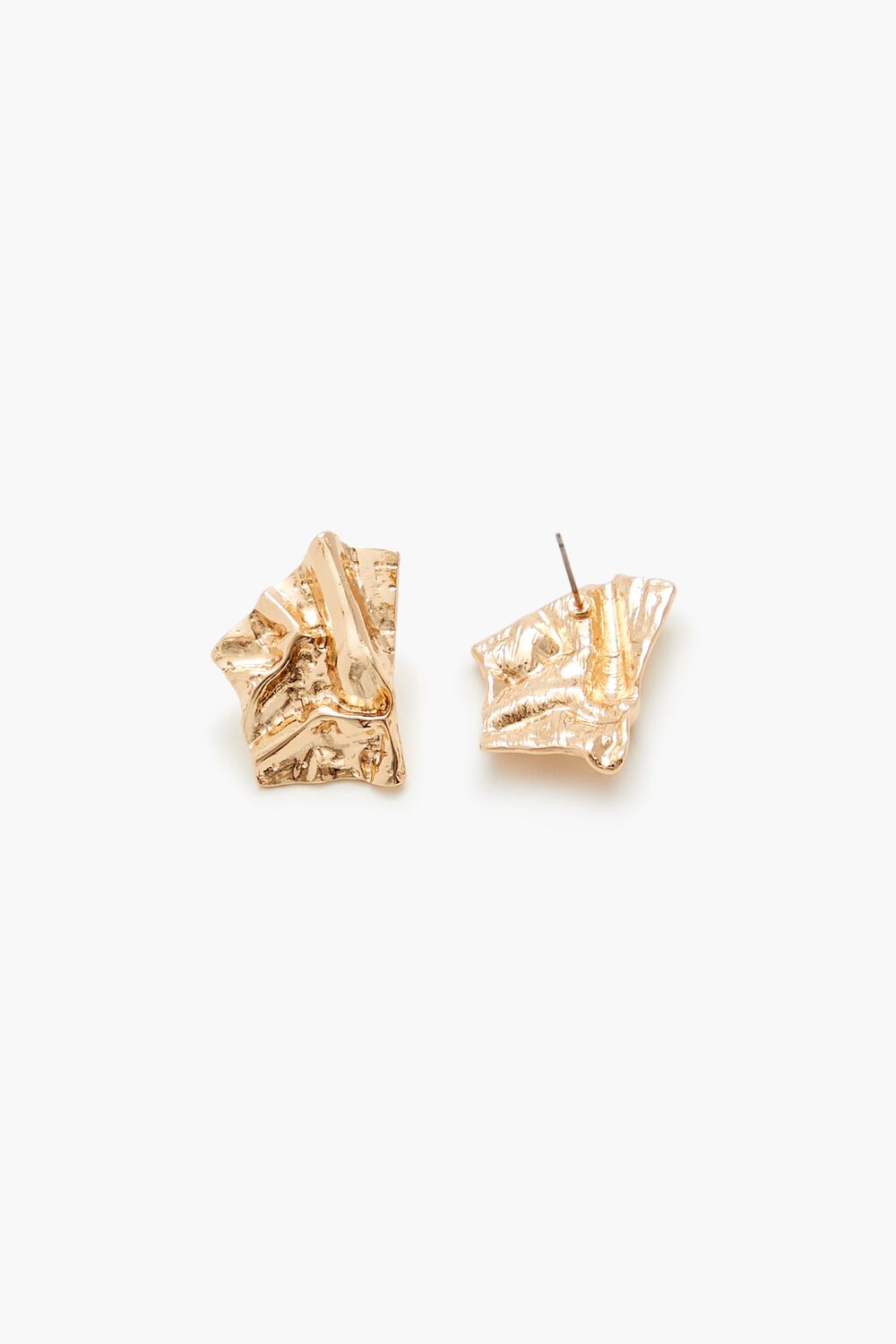 A pair of high-polish drop earrings featuring a geometric construction, abstract hammered design, and post-back closures.Size + Fit