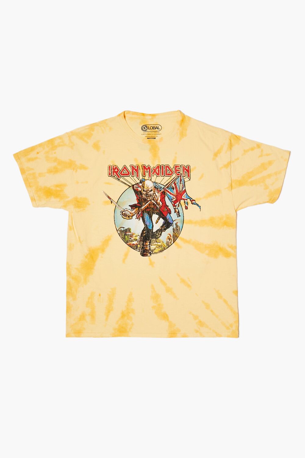 A knit graphic tee featuring an allover tie-dye wash, crew neck, front ‘Iron Maiden’ text, accompanying album cover graphic, and short sleeves.- Officially licensed product