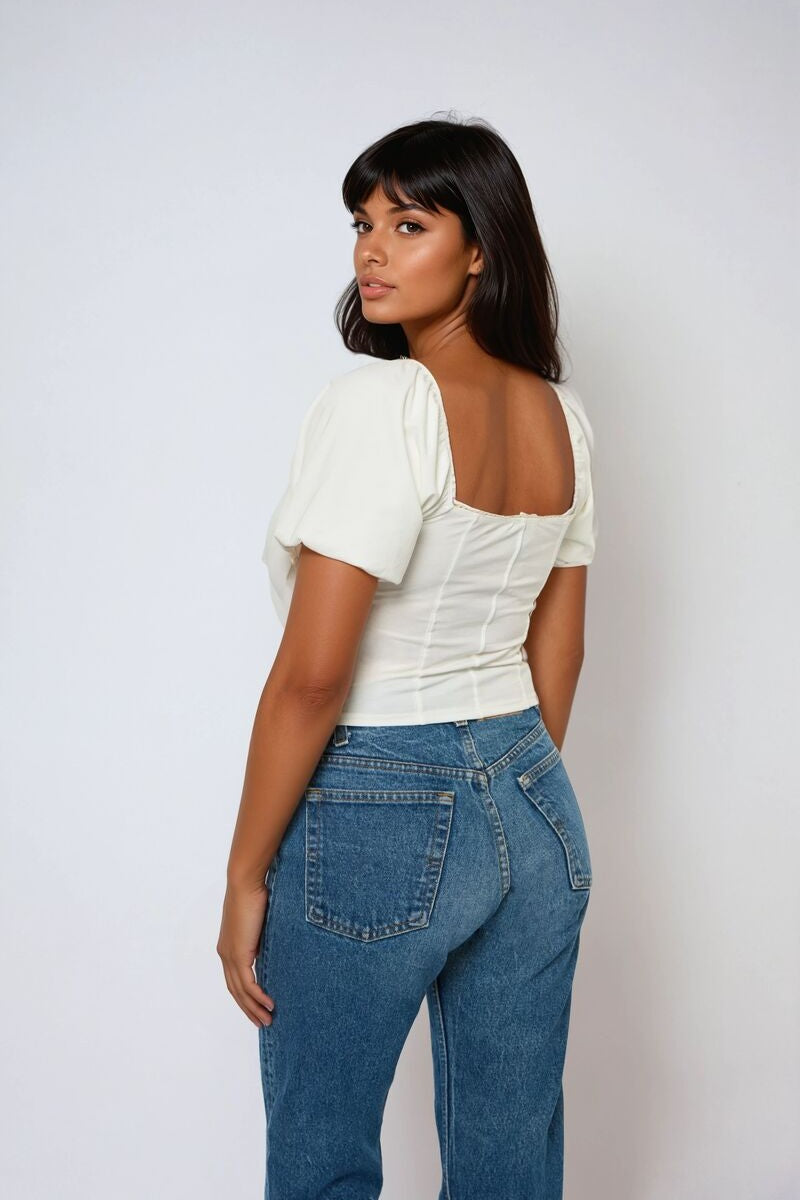 Square neckline and back with short puff sleeves for a romantic silhouette