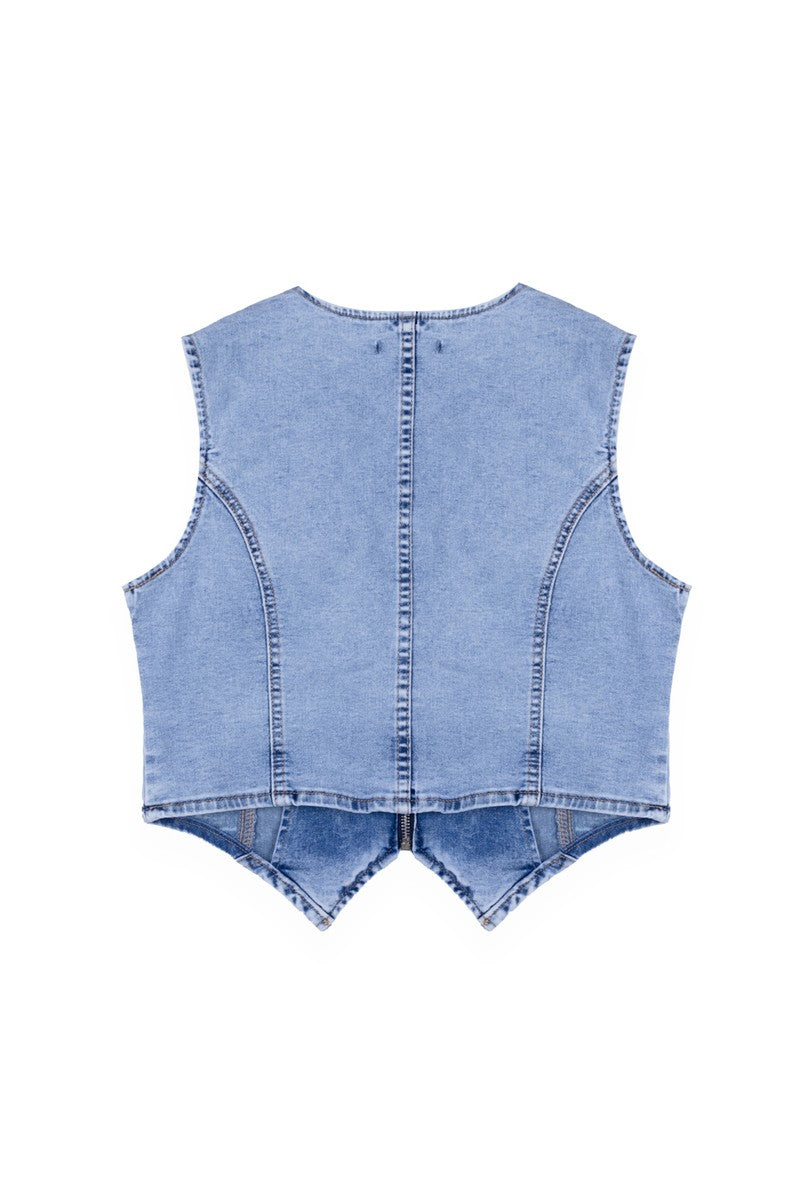 Sleeveless stretch denim vest with fitted silhouette