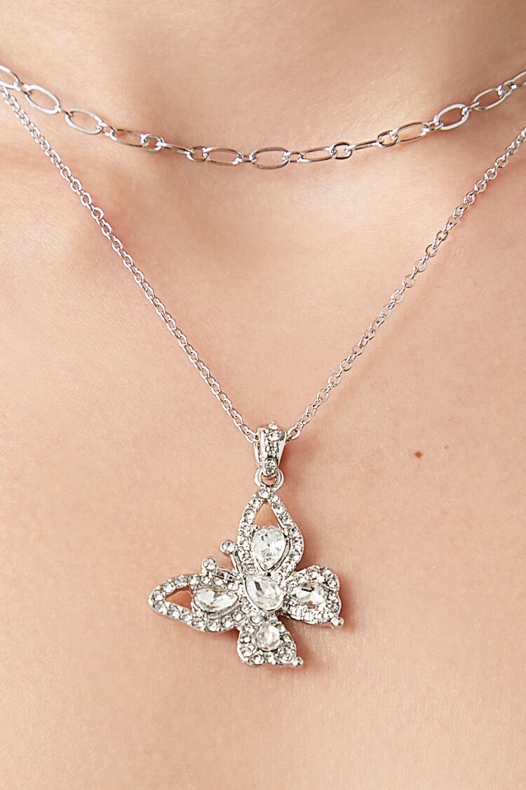 Layered Faux Gem Butterfly NecklaceLayered Faux Gem Butterfly Necklace