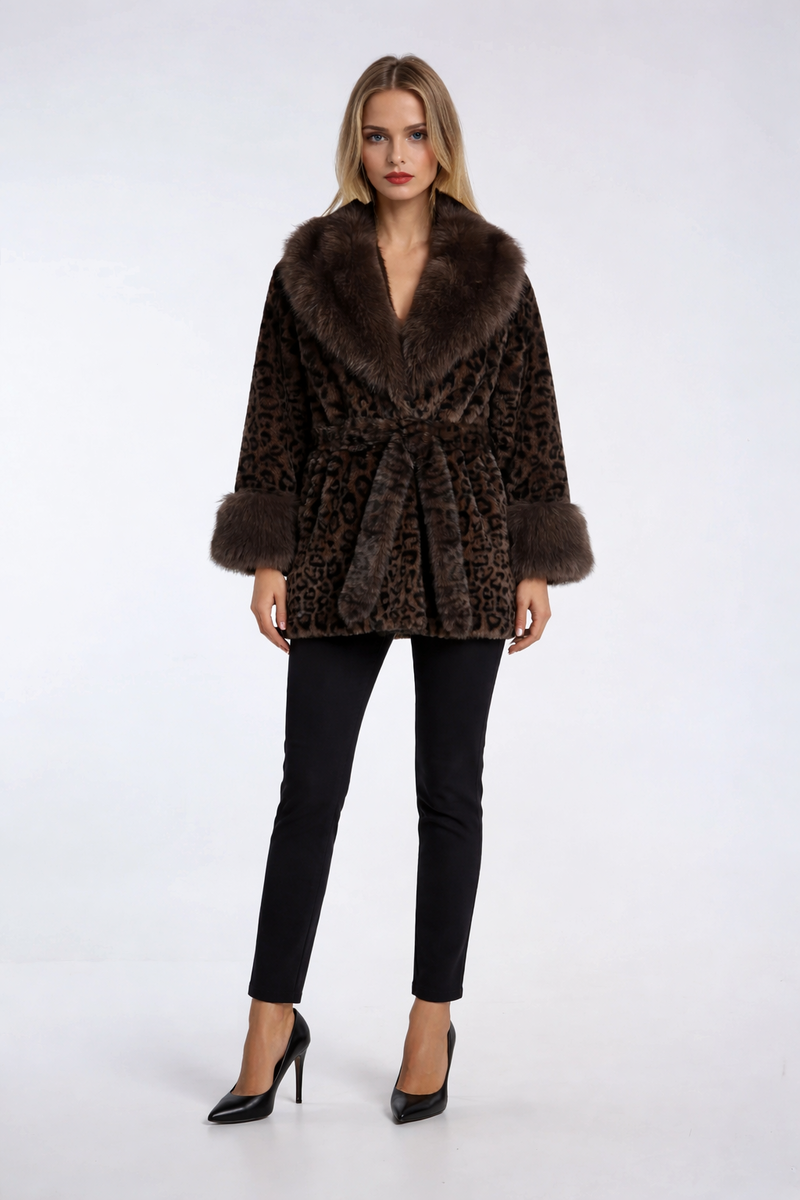 Leopard Print Tie-Waist Faux Fur JacketLeopard Print Tie-Waist Faux Fur Jacket
