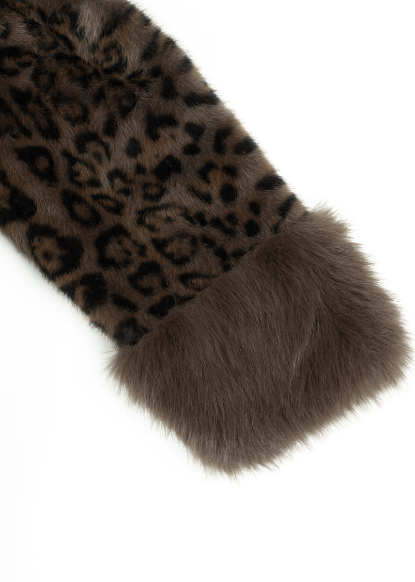 Plush faux fur jacket with allover leopard print