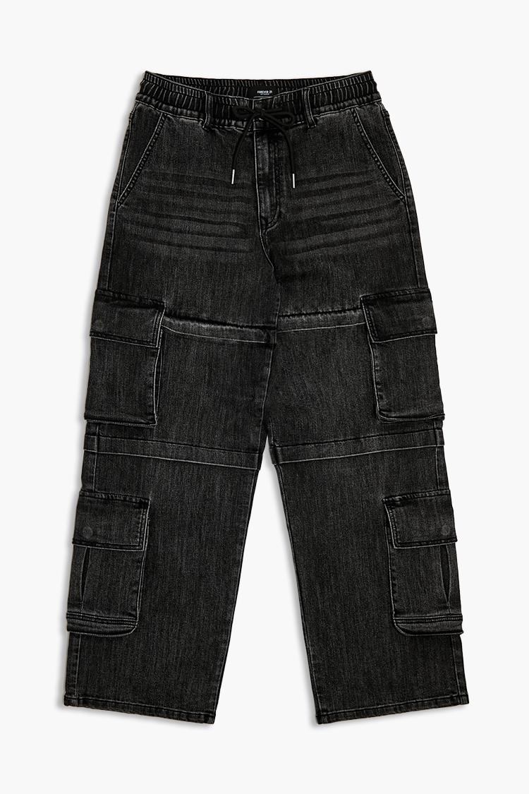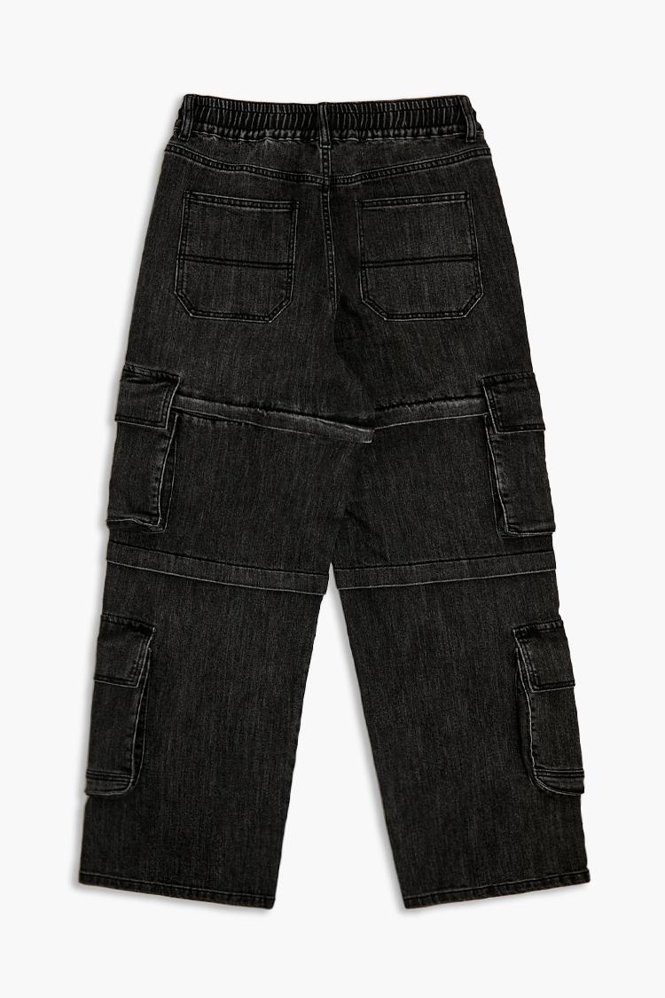 Crafted from stretch-denim, this pair of baggy jeans features whiskering, an elasticized mid-rise waist, belt loops, zip fly and button-front closure, slanted front pockets, wide leg, leg cargo flap pockets, and back patch pockets.Content + Care