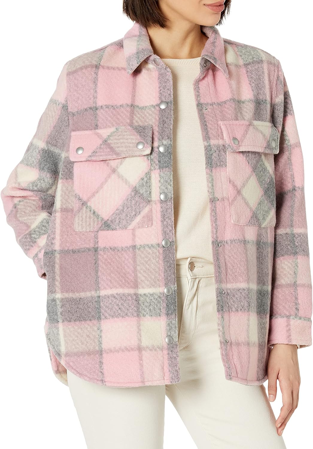 Our take on a traditional button-down classic: The shacket. Our piece features convenient pockets and high-quality materials for a warm and cozy feel. Product Care : Dry Clean Only Material : 80% polyester, 20% wool shell, 97% polyester, 3% spandex lining