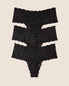 Triple the lace experience with our Never Say Never Comfie Thongs 3 Pack! Your favorite mid-rise thong is available for a set of 3, a budget-friendly deal that you cannot resist. This sultry thong in black showcases a beautiful floral pattern that adorns your body while giving you the kind of comfort wear that you need. It has elastic-free waistband and gives minimal rear coverage. This set of 3 is truly a practical choice. Product Care : Hand Wash. Line Dry Material : Lace: 93% Polyamide 7% Elastane, Gusset: 95% Cotton 5% Elastane