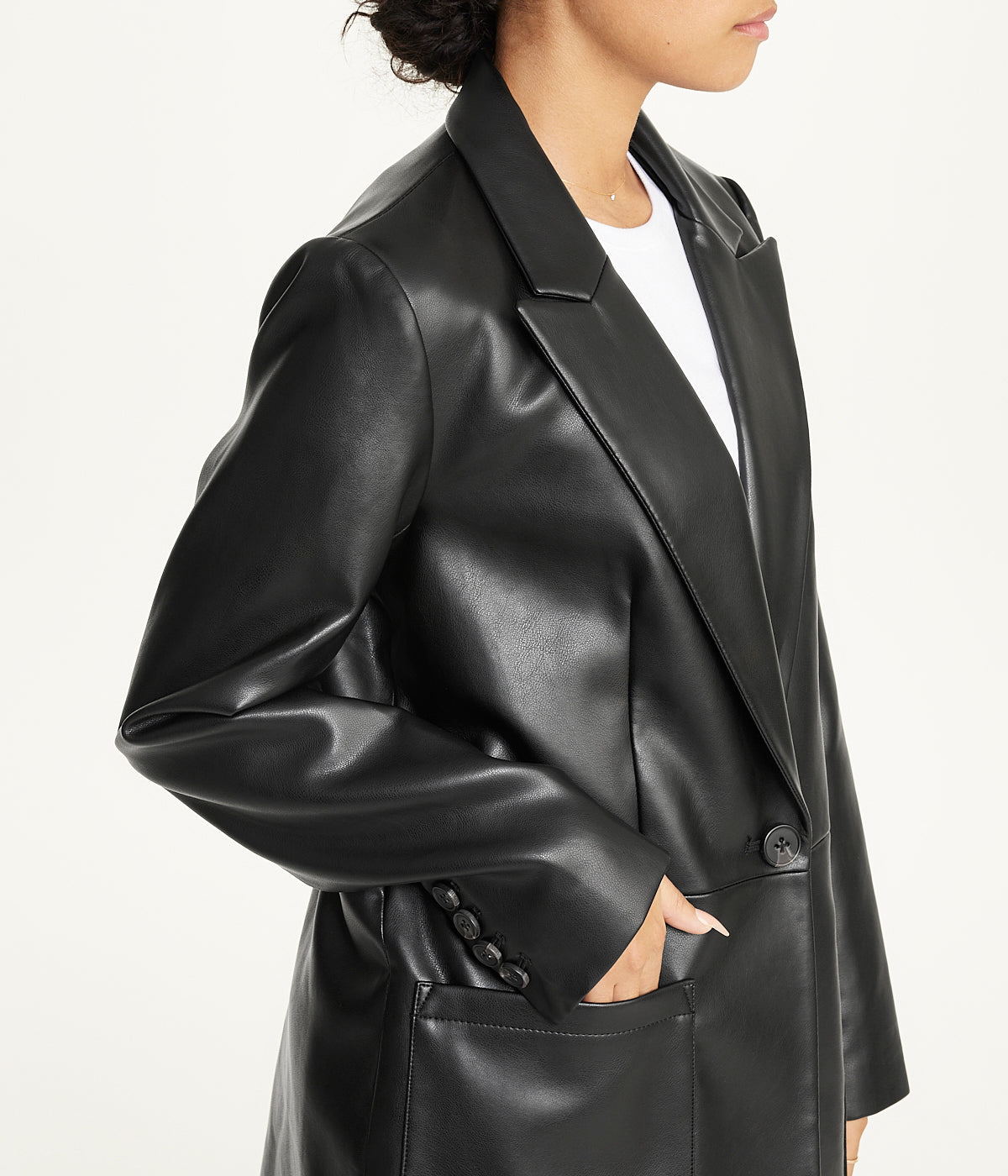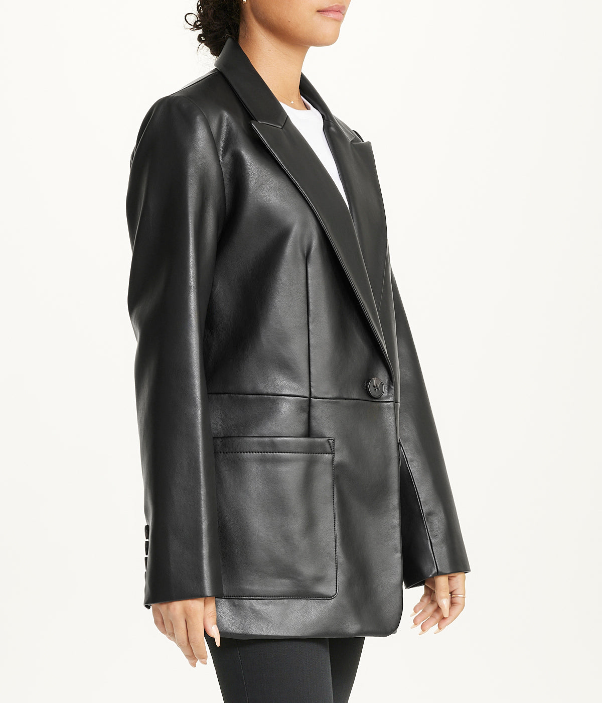Elevate your wardrobe with our Notch Collar Oversized PU Blazer. This sleek and stylish piece features a single-button closure and a flattering oversized silhouette, adding a modern edge to any outfit. Crafted from high-quality faux leather, it’s perfect for year-round wear. Whether you’re heading to the office or going out for a night on the town, this versatile blazer effortlessly complements your look and exudes confidence. Material: PU