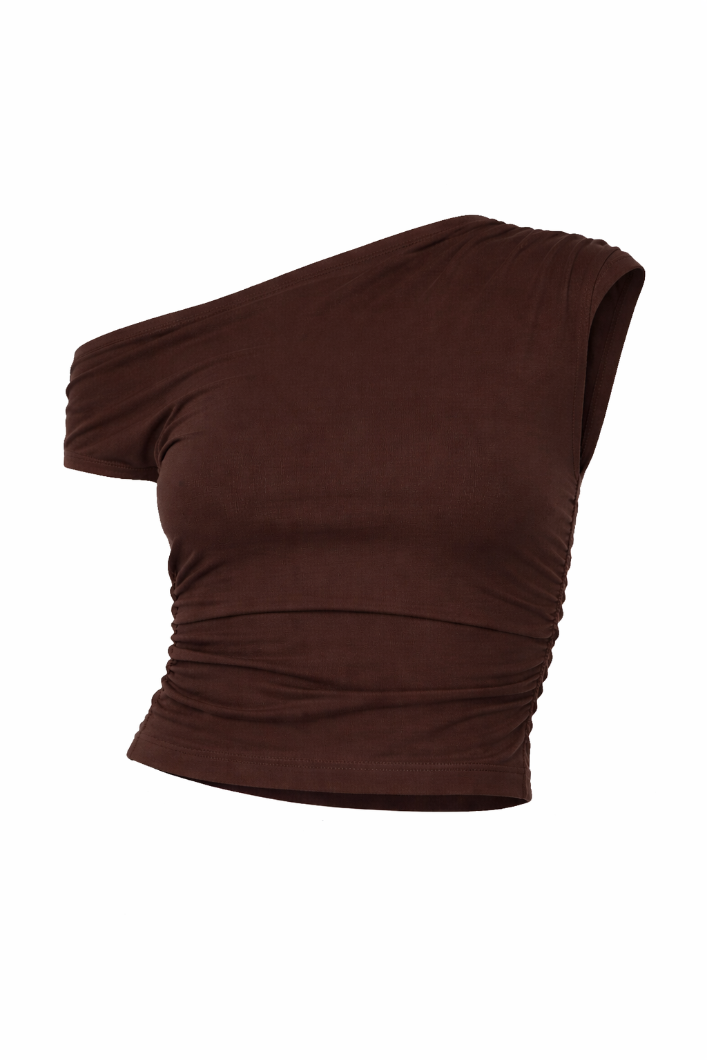 Soft off-the-shoulder top in a warm chocolate brown hue