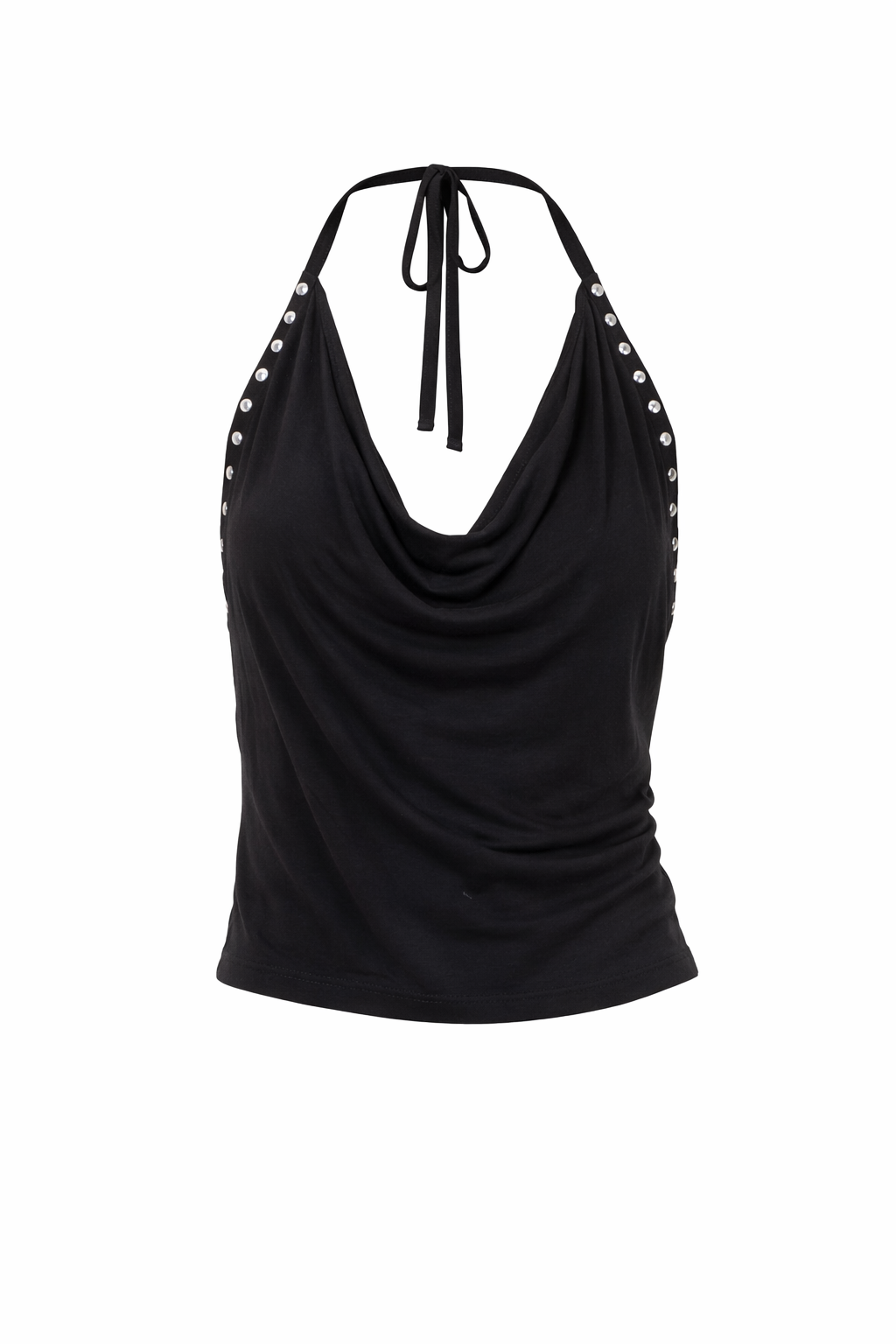 Halter tank top featuring a draped cowl neckline for an effortlessly chic look