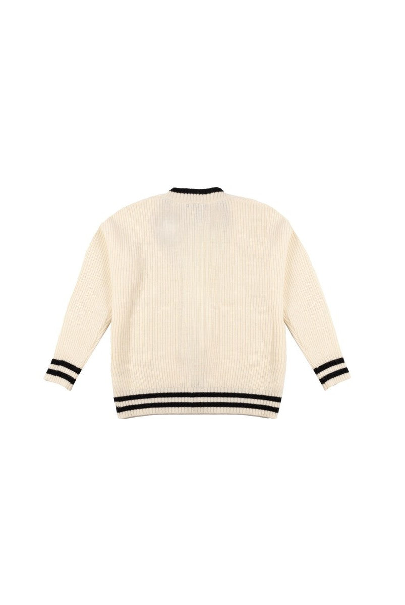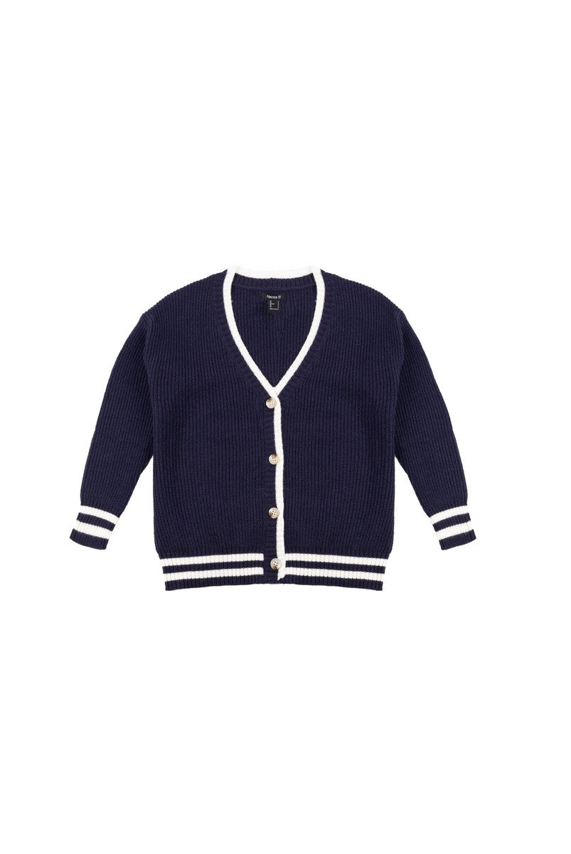 Ribbed knit cardigan sweater designed with a classic V-neckline and oversized fit