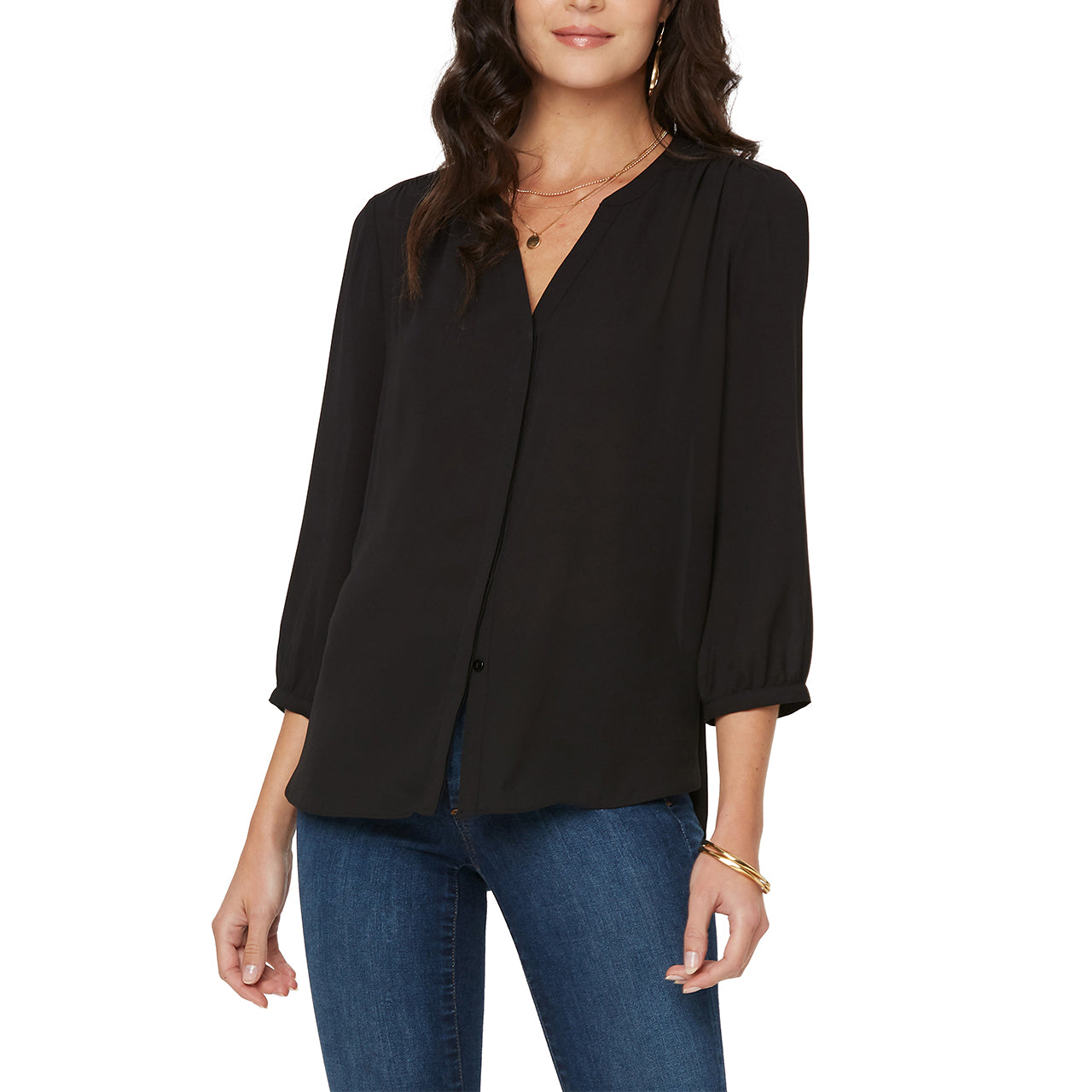 NYDJ’s Pintuck Blouse boasts a billowy three-quarter-sleeved silhouette that’s perfect when paired with any of our slimming denim styles. Pleating at the back yoke creates a sophisticated yet easy drape. Split round neckline with covered full front placket and button closures.Product Care : Machine wash cold and line dryMaterial : 100% Polyester
