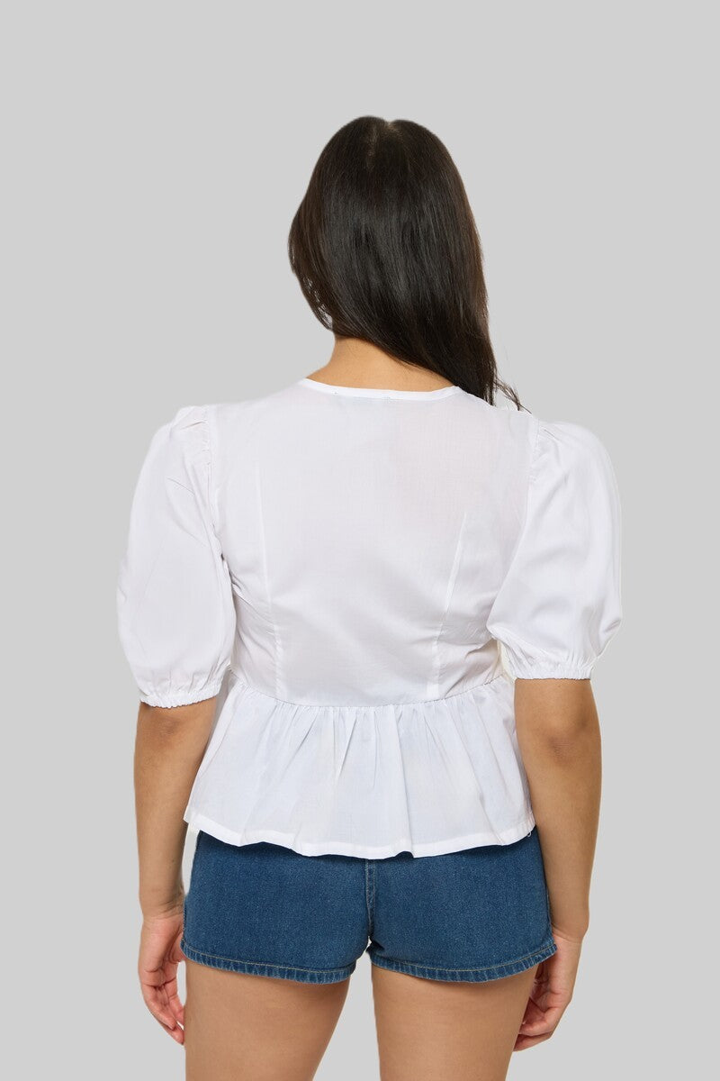 Woven poplin blouse with a flowy peplum hem