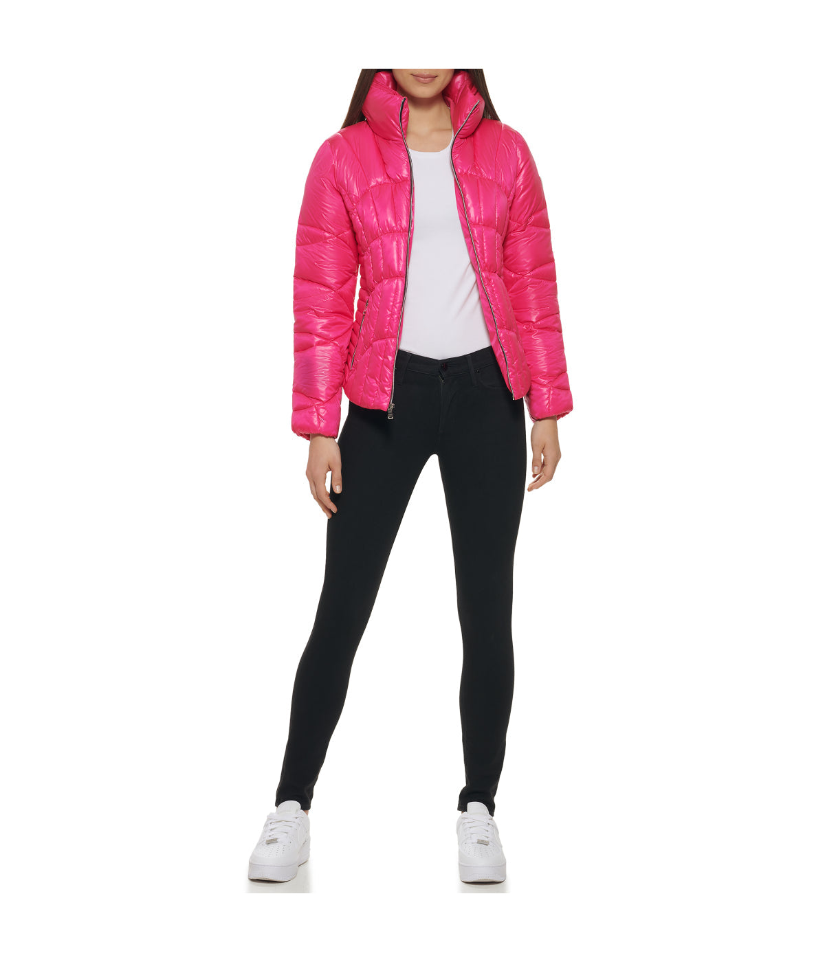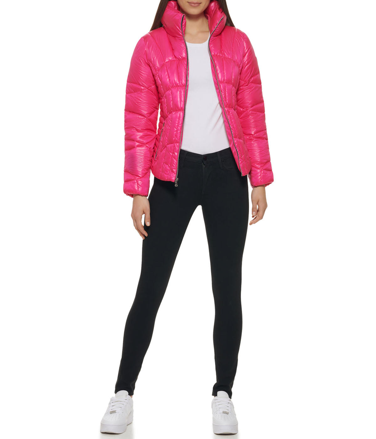 Introducing our stylish and cozy puffer jacket, a must-have addition to your winter wardrobe. This meticulously crafted piece boasts a fitted bodice that accentuates your silhouette while providing exceptional warmth. Its quilted exterior not only adds a touch of sophistication but also ensures you stay comfortably insulated during chilly days. Equipped with a convenient front zip closure and zip pockets, this jacket offers both practicality and fashion-forward design. The 23.25″ length (size M) strikes the perfect balance between versatility and on-trend style. Embrace the cold with confidence, thanks to the 100% polyester self/lining/fill, which guarantees optimal heat retention. Additionally, the 98% polyester and 2% spandex knit collar and cuffs ensure a snug fit that keeps the cold at bay. Material: Polyester