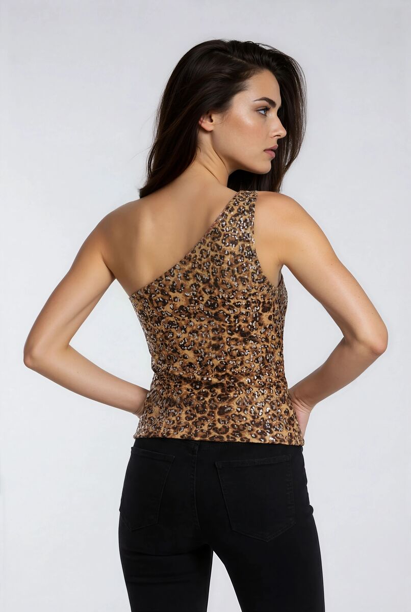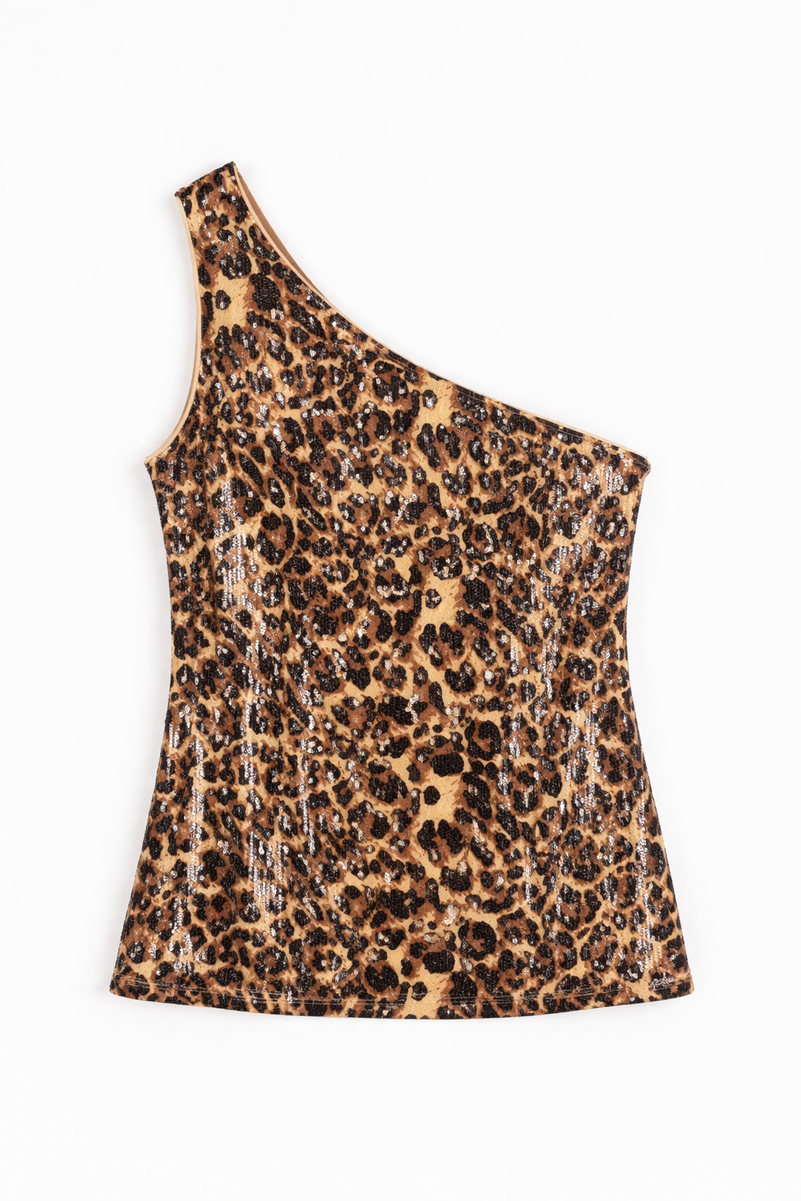 Allover leopard pattern accented with sequins for a bold, high-shine finish