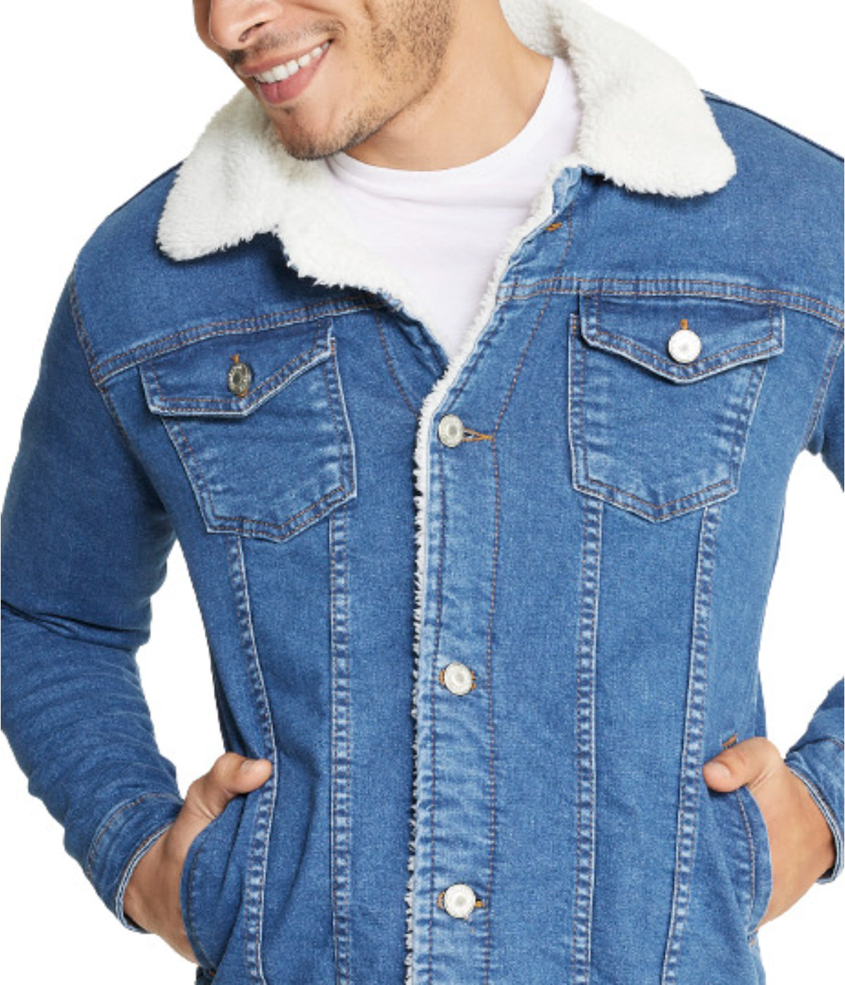 The I8 EXCEL Sherpa Collar Light Blue Denim Jacket is a trendy and versatile piece for your wardrobe. Made with high-quality denim, this jacket offers a classic and timeless look. The Sherpa collar adds a cozy and stylish touch, perfect for colder weather. With its light blue wash and comfortable fit, this denim jacket is a go-to option for adding a casual yet fashionable layer to your outfits. Product Care : Refer to Garment Material : 100 % Deninm Cotton