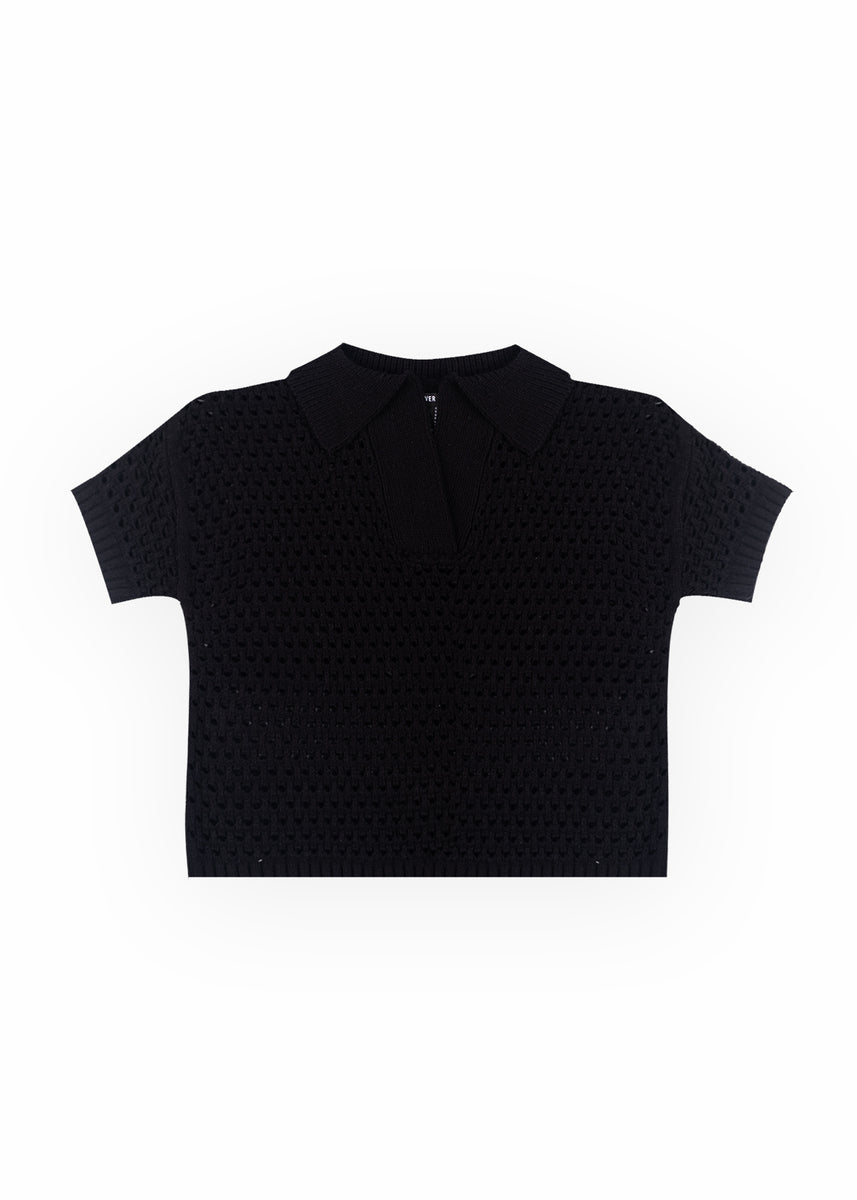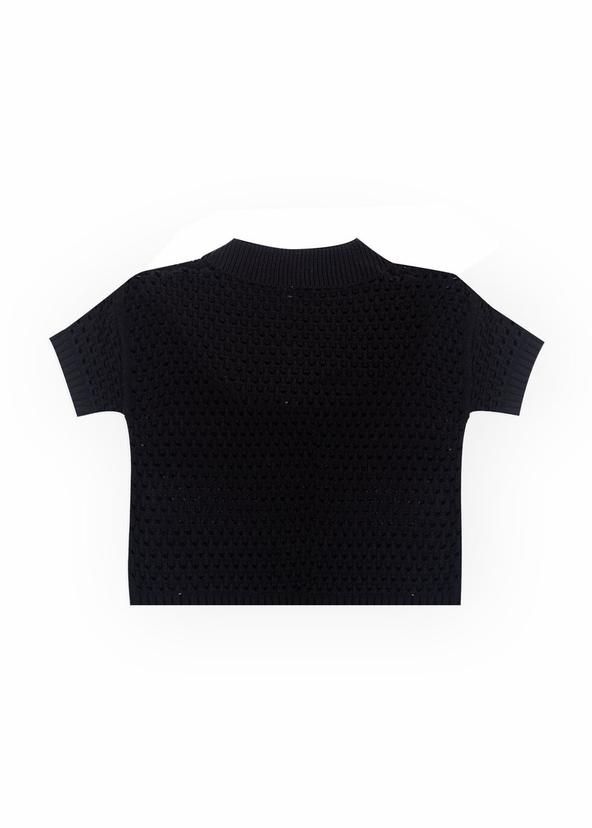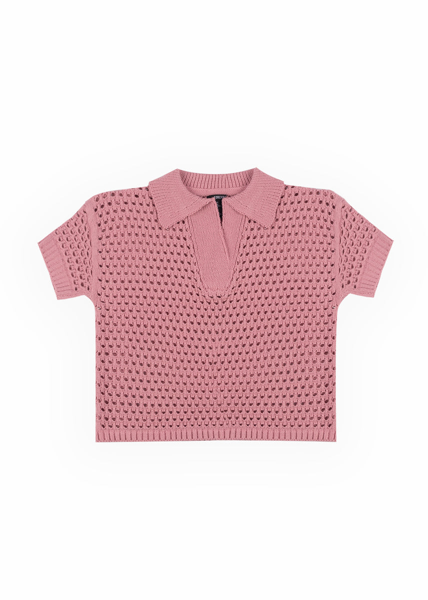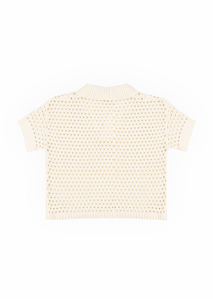 Short-Sleeve Crochet Collared Sweater Top