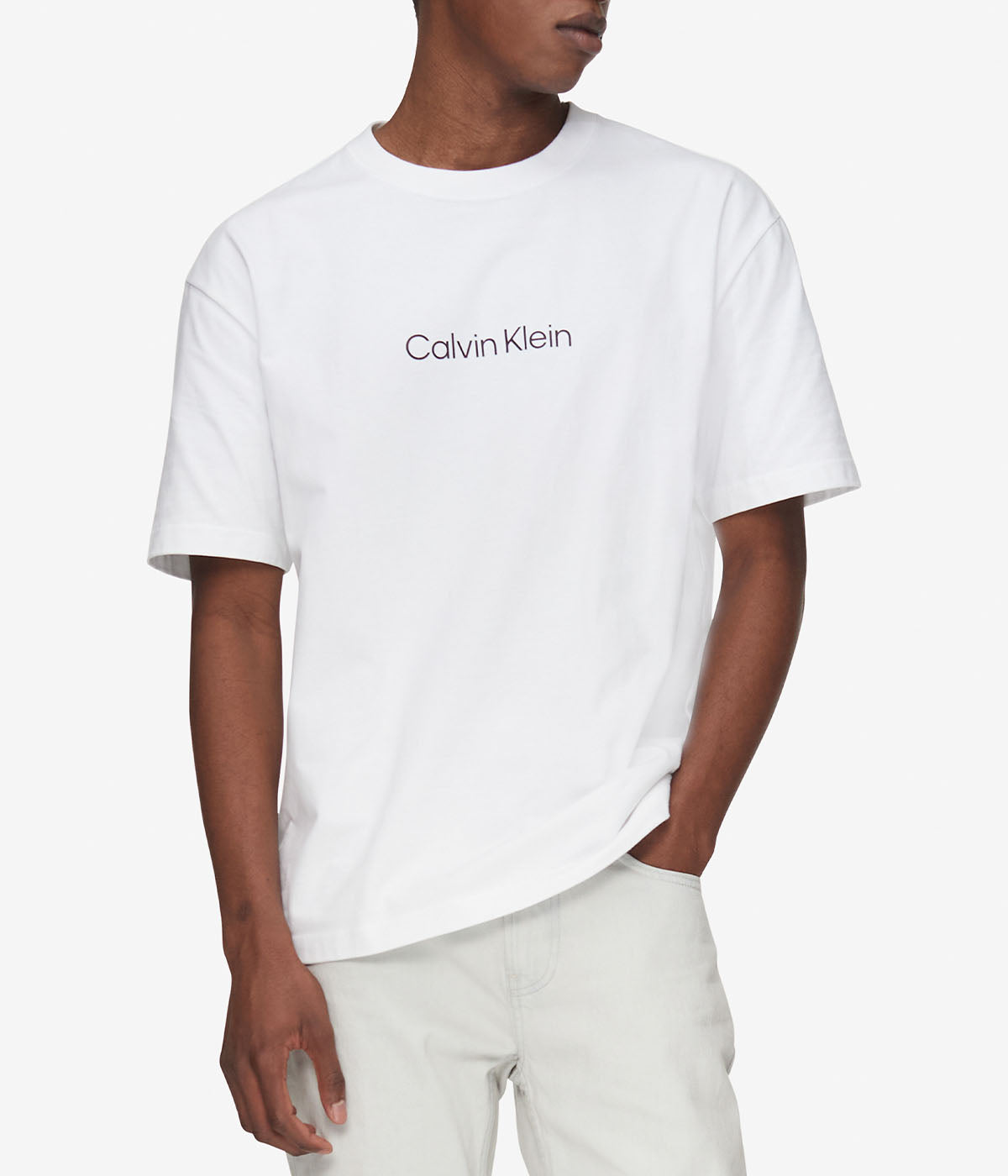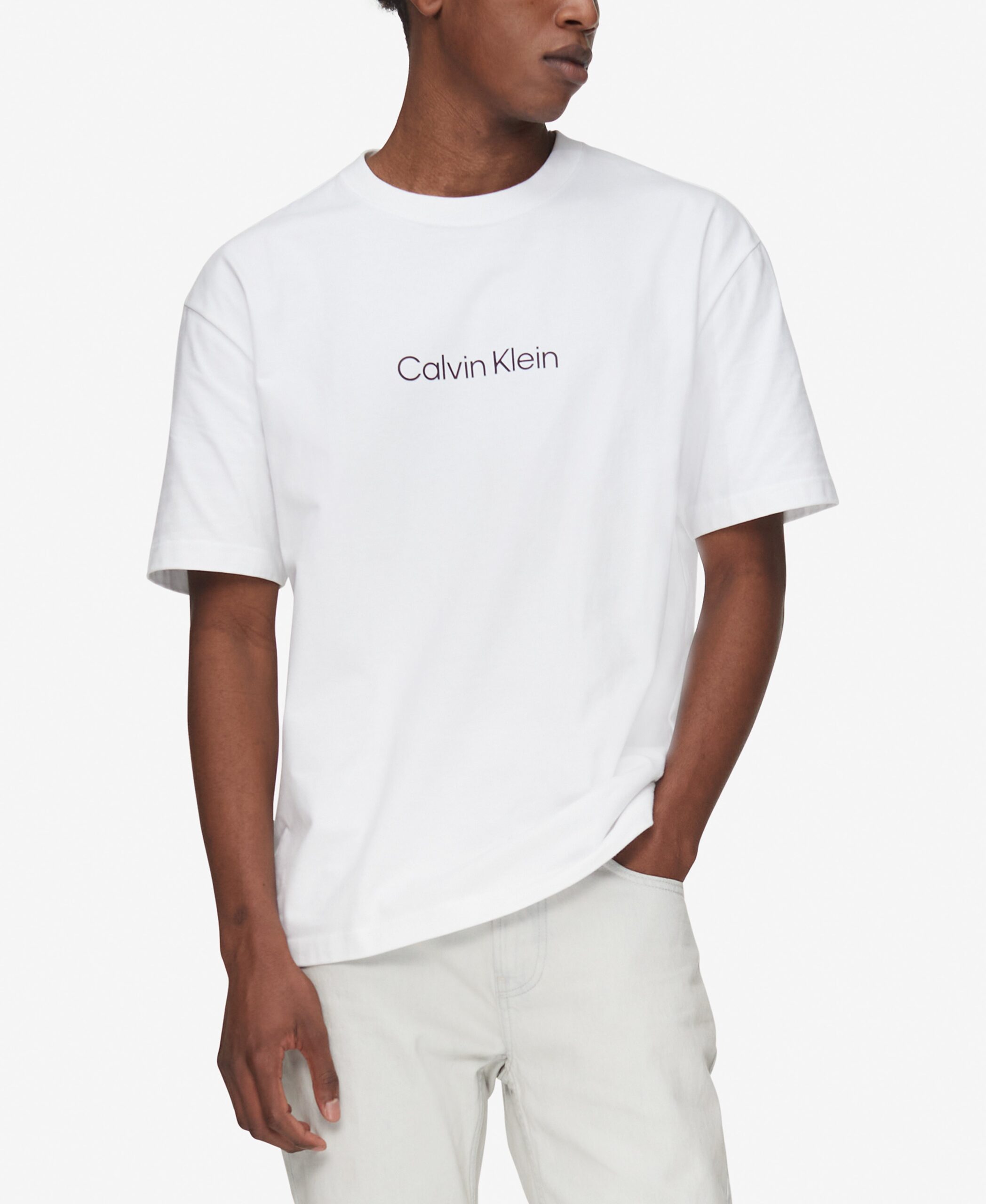 This Calvin Klein crewneck tee will take your casual outfit to the next level. This soft and comfy tee has a traditional crewneck, short sleeve style. The casual fit and lightweight cotton fabric make this an excellent choice for all-day wear, regardless of activity. Product Care : Refer To The Garment Tag For Care Material : 100% Cotton