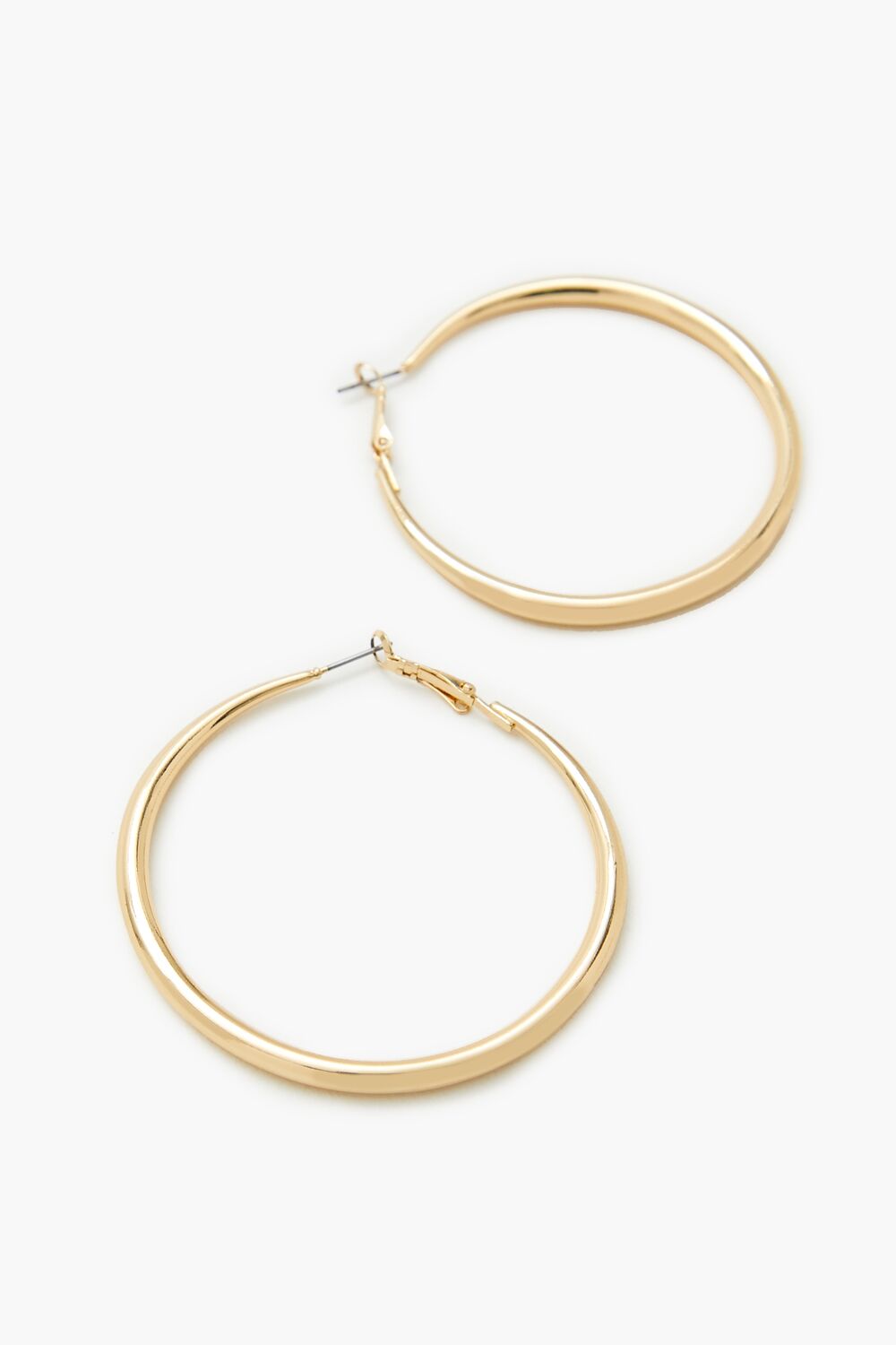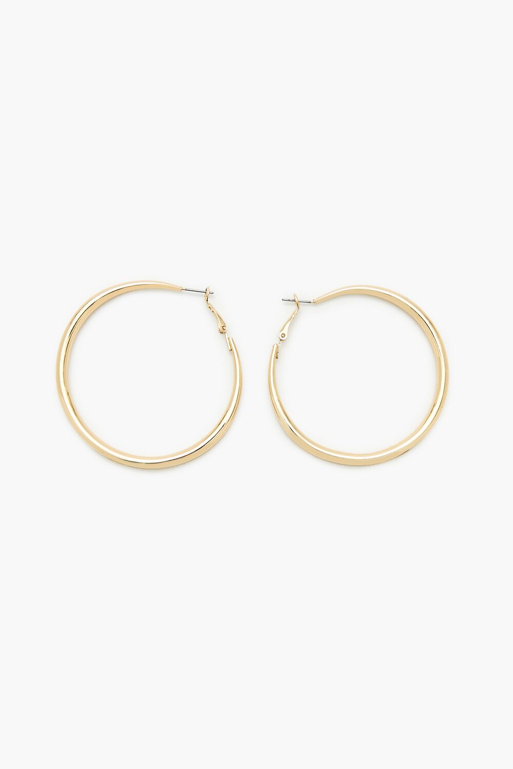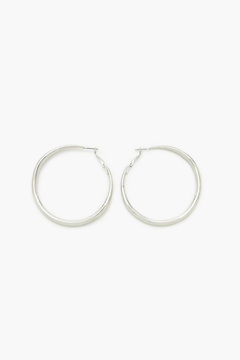 A pair of high-polish hoop earrings featuring a smooth finish and omega closures.Size + Fit