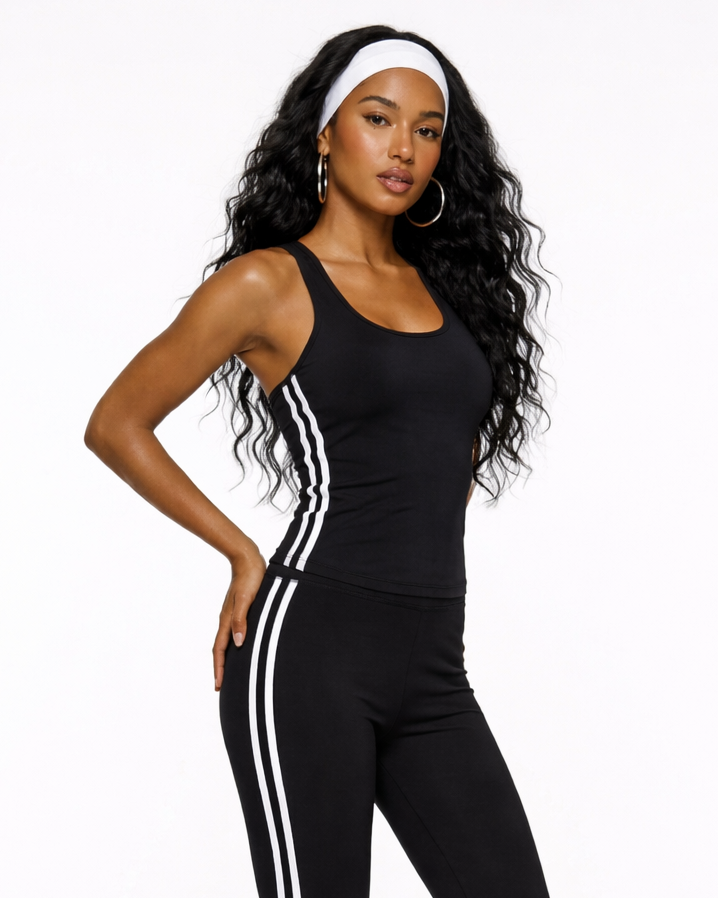 Fitted halter-style tank top with a sleek, sporty silhouette
