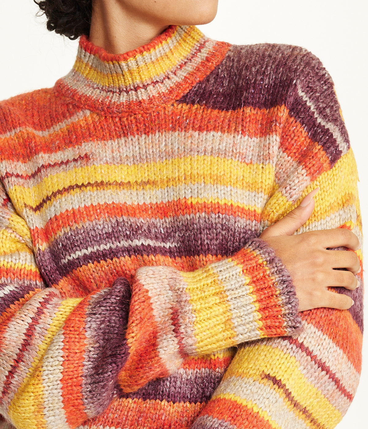 Elevate your style with our collection of Ladies’ Sweaters. Whether you’re looking for a cozy piece to lounge in or a stylish addition to your outfit, our sweaters have you covered. This stripe mock neck pullover adds a cozy touch to your outfit. This garment runs small, please size up. Product Care : Refer to Garment Material : Tricot %80 Acrylic %20 Poly.