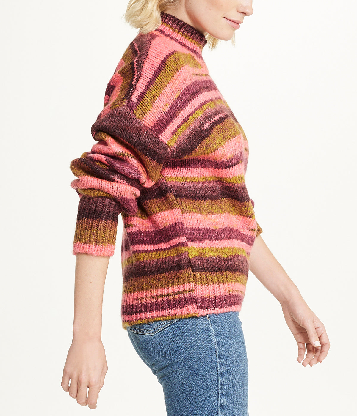 Elevate your style with our collection of Ladies’ Sweaters. Whether you’re looking for a cozy piece to lounge in or a stylish addition to your outfit, our sweaters have you covered. This stripe mock neck pullover adds a cozy touch to your outfit. This garment runs small, please size up. Product Care : Refer to Garment Material : Tricot %80 Acrylic %20 Poly.