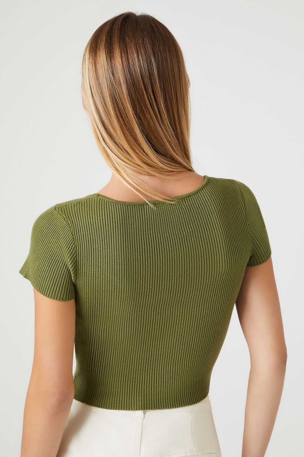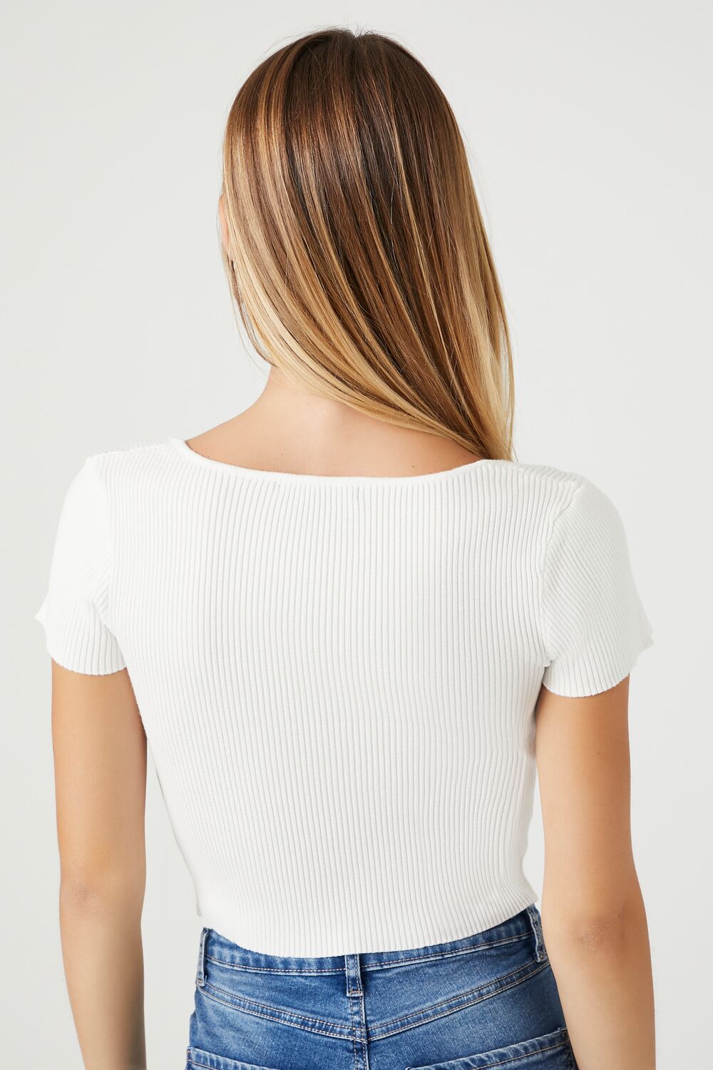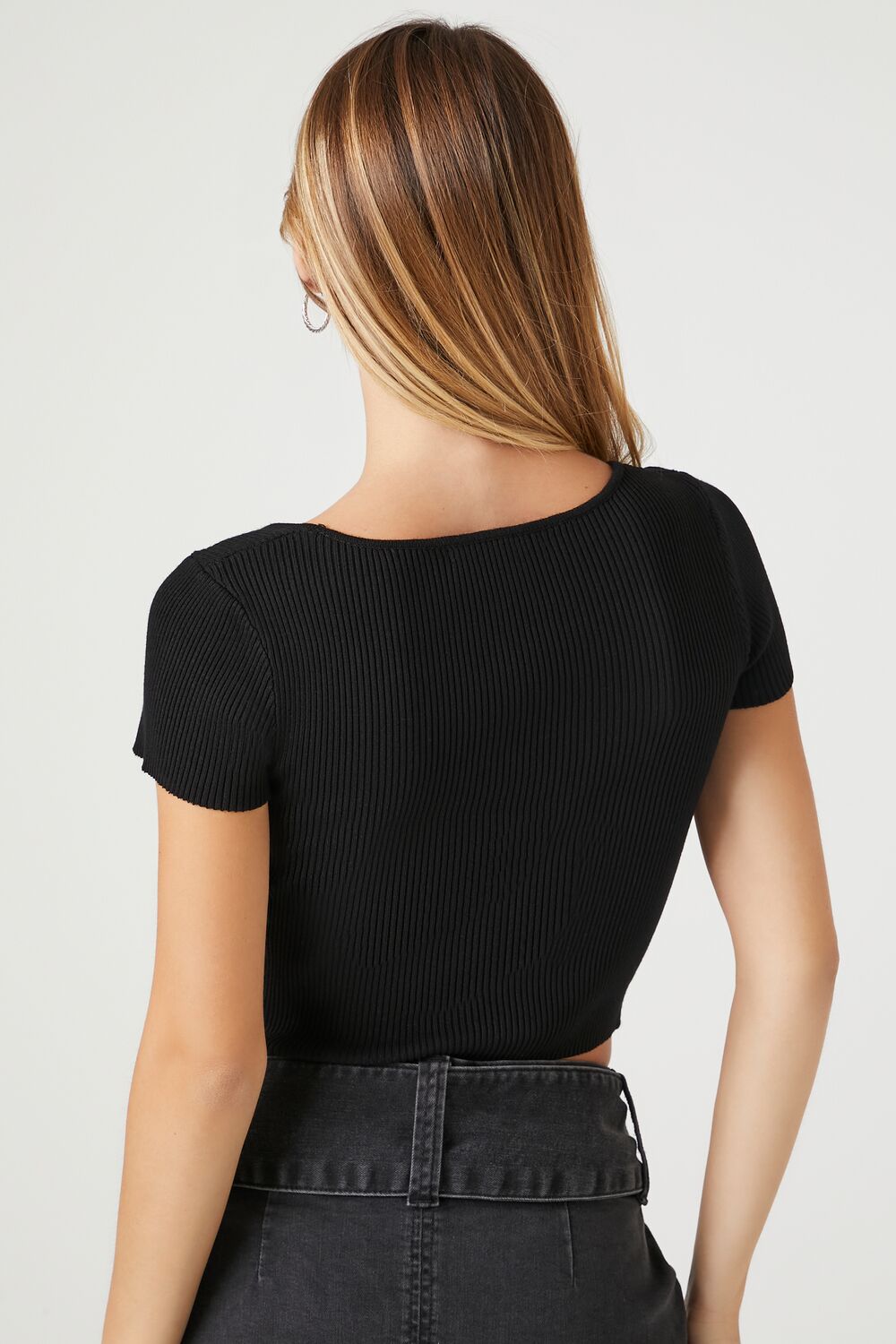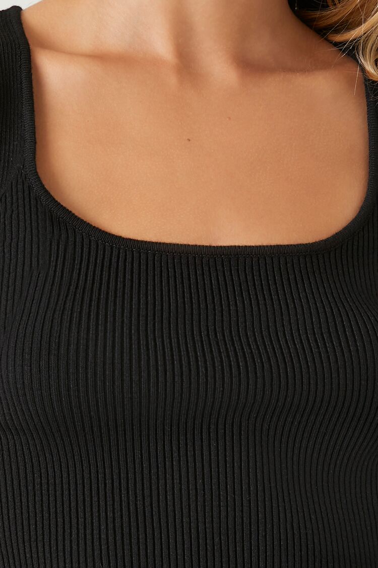 A sweater-knit crop top featuring a square-cut neckline, fitted silhouette, and long sleeves.Content + Care
