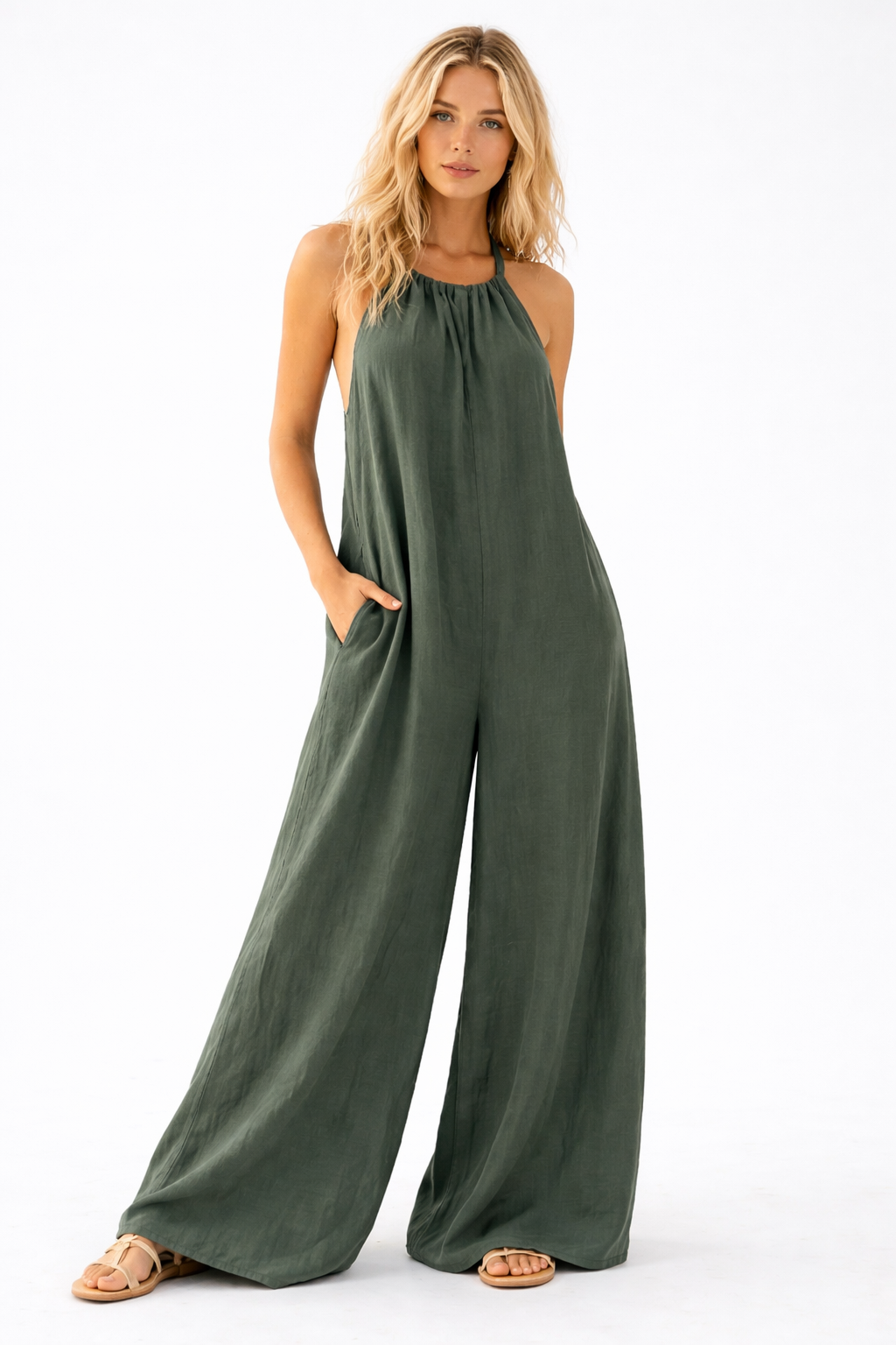 ULTRA WIDE LEG JUMPSUIT WITH POCKETSULTRA WIDE LEG JUMPSUIT WITH POCKETS