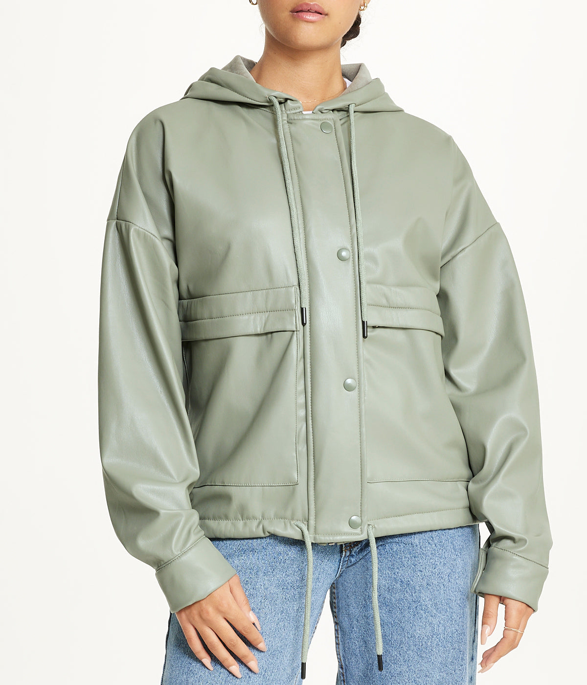 Vegan Leather Button Front Jacket