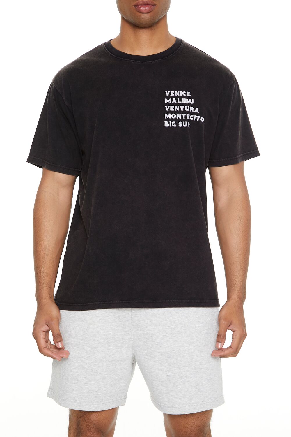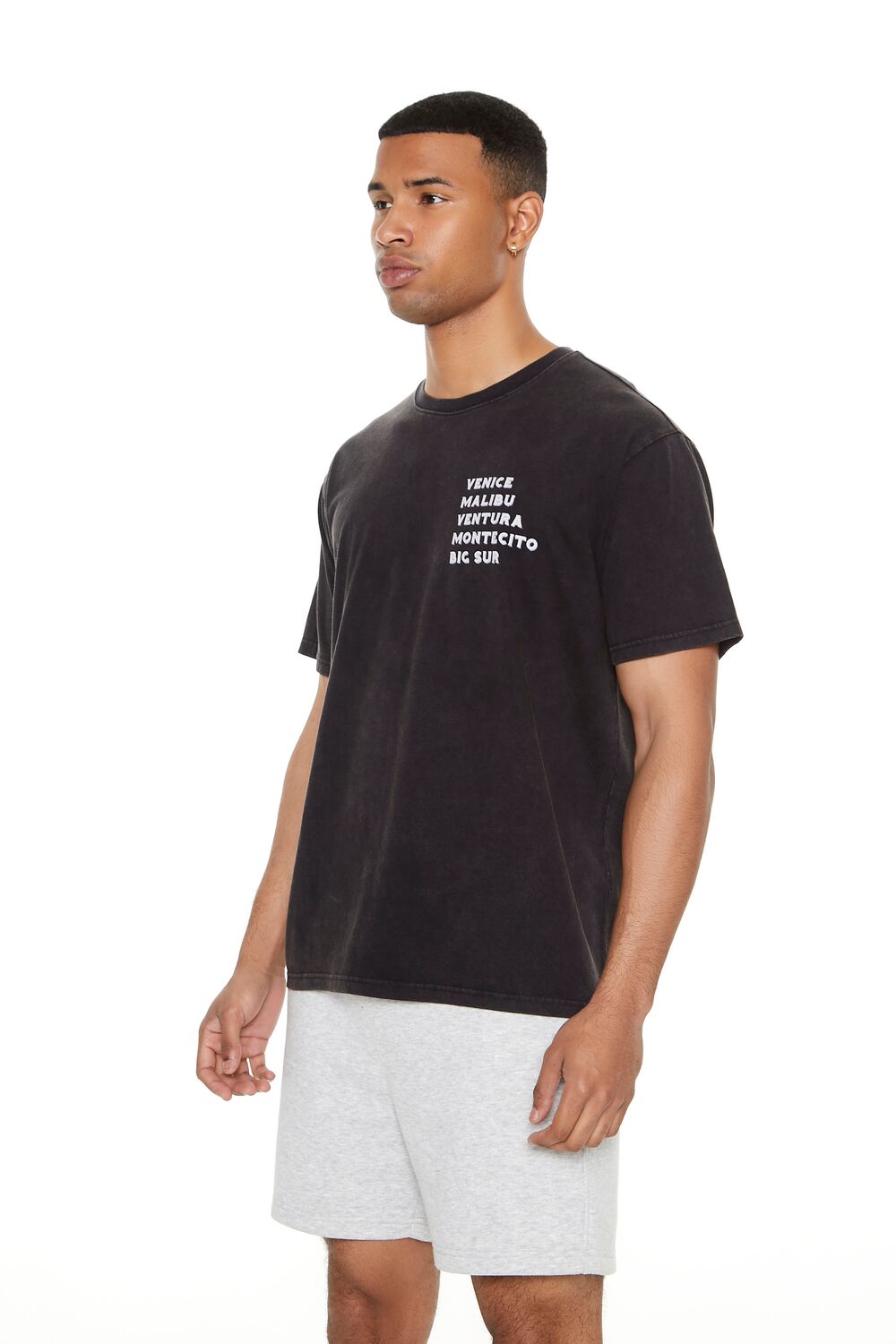 A knit tee featuring ‘Venice, Malibu, Ventura, Montecito, Big Sur’ chest text, short sleeves, and a crew neck.Content + Care
